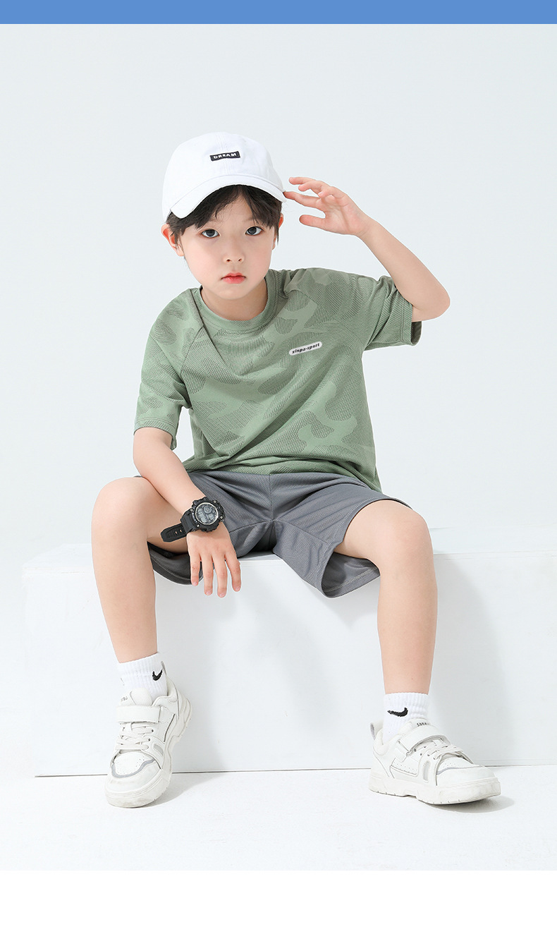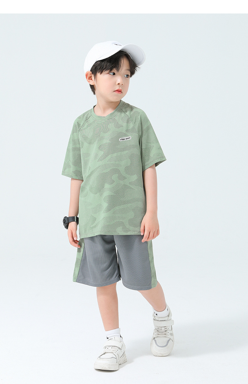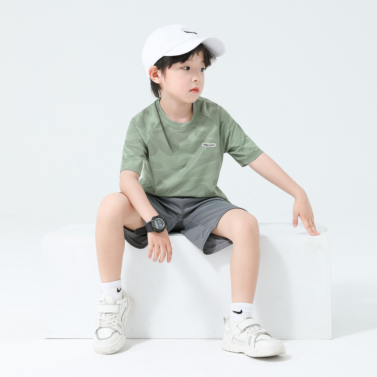 어린이 의류 소년 여름 의류 어린이 세트 여름 새로운 스포츠 빠른 건조 옷 소년 통기성 반팔 반바지 투피스 세트