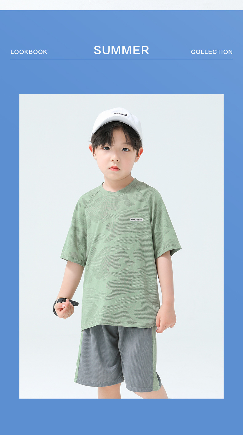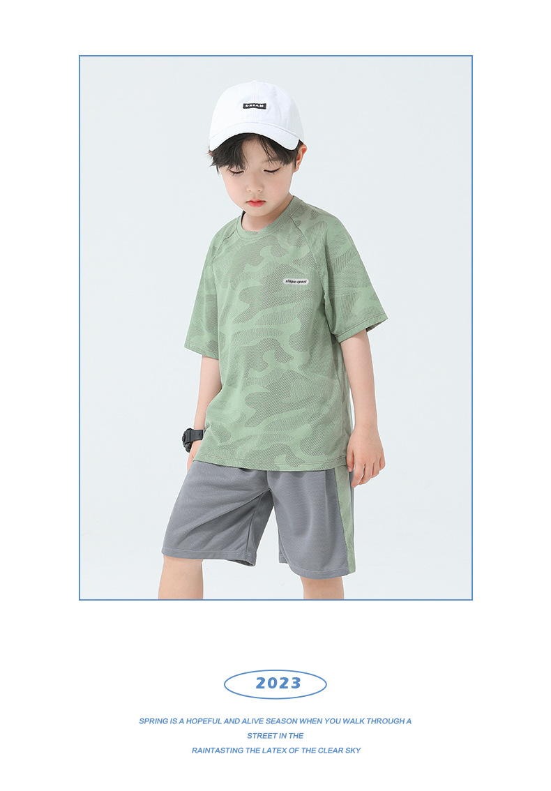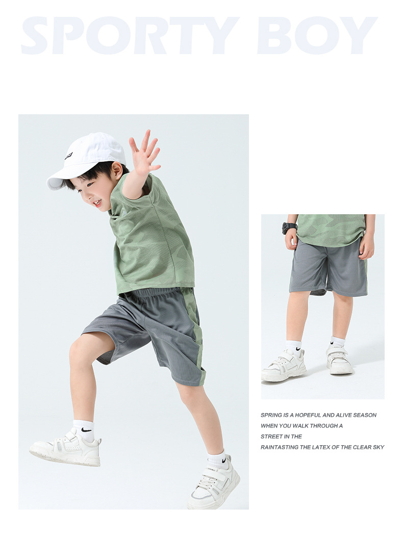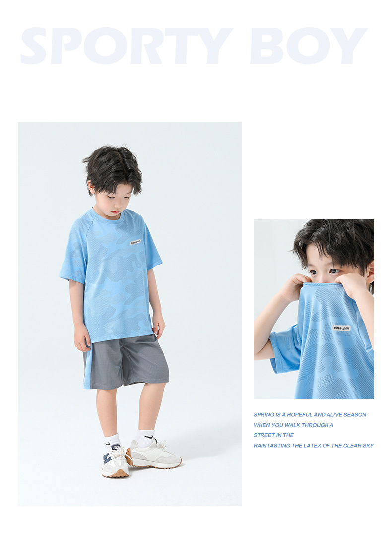 어린이 의류 소년 여름 의류 어린이 세트 여름 새로운 스포츠 빠른 건조 옷 소년 통기성 반팔 반바지 투피스 세트
