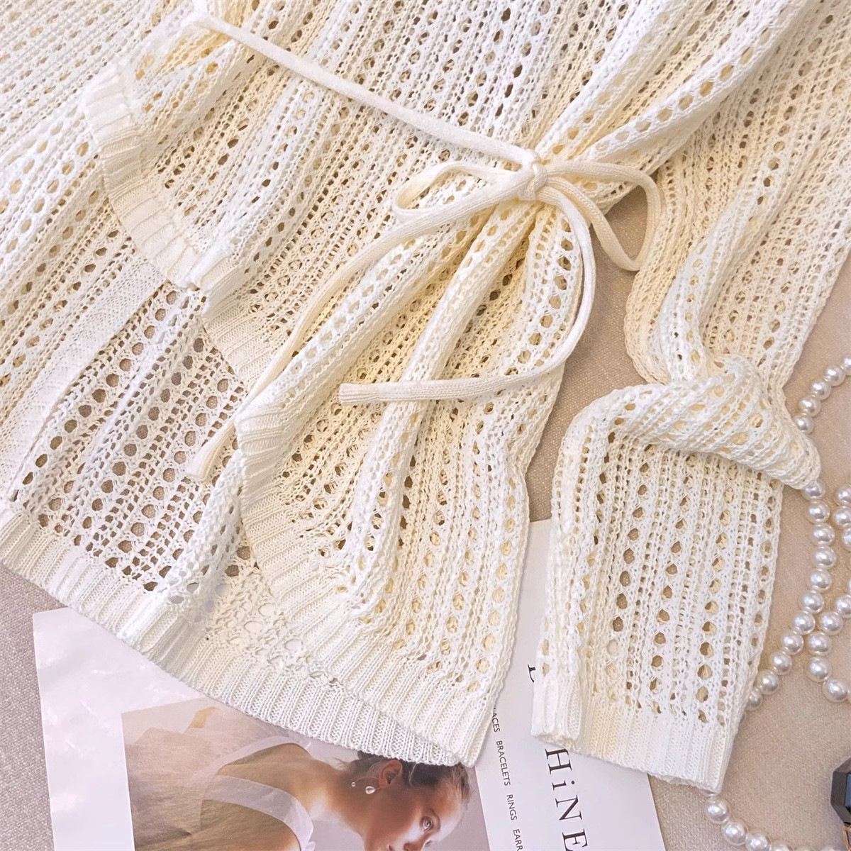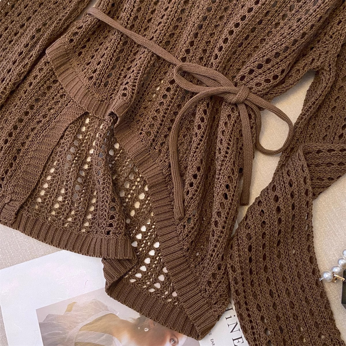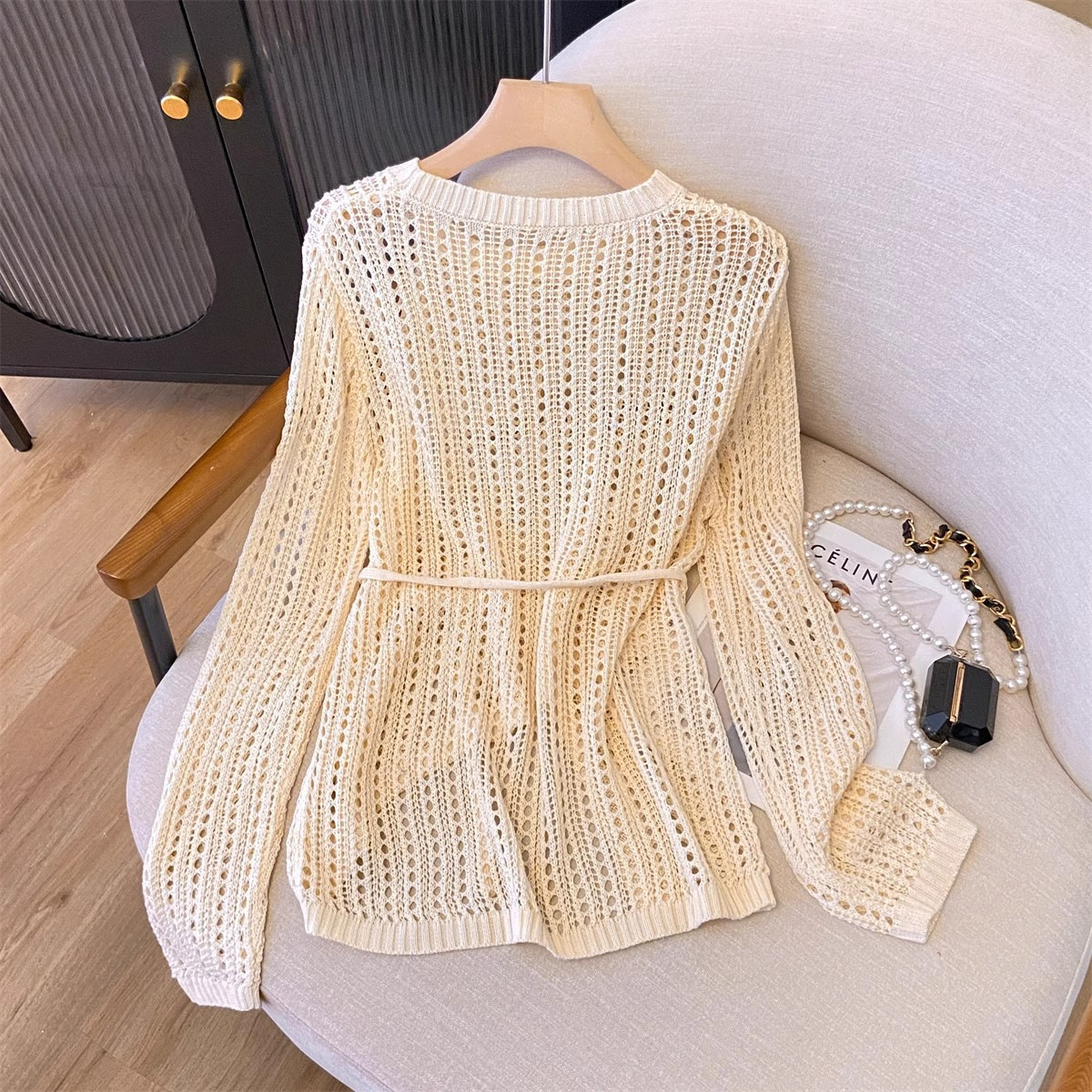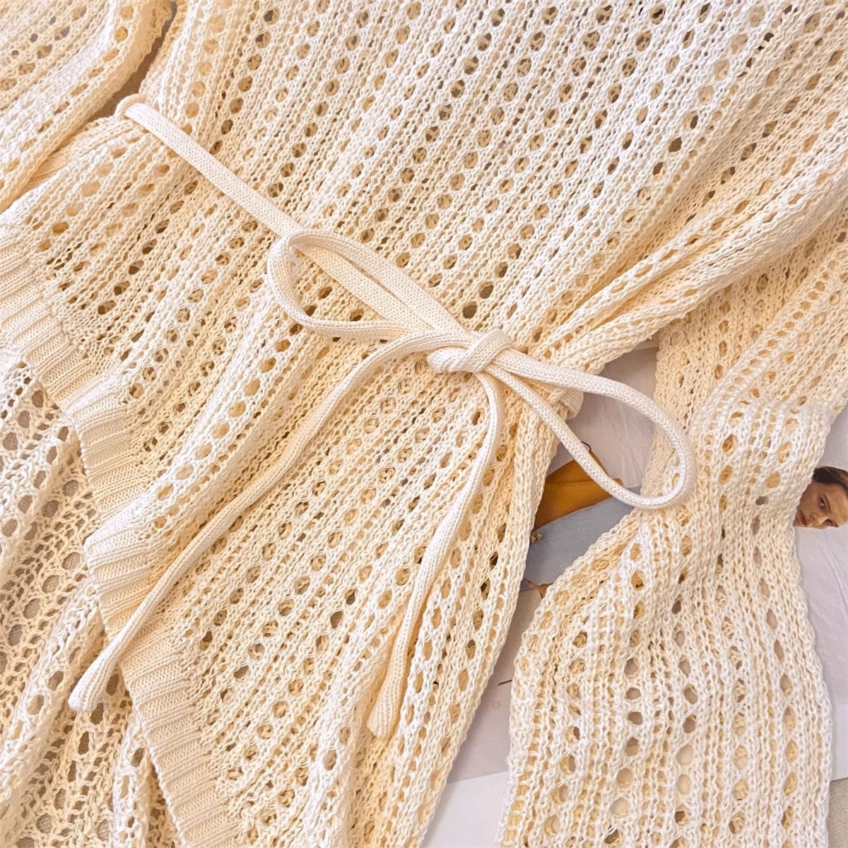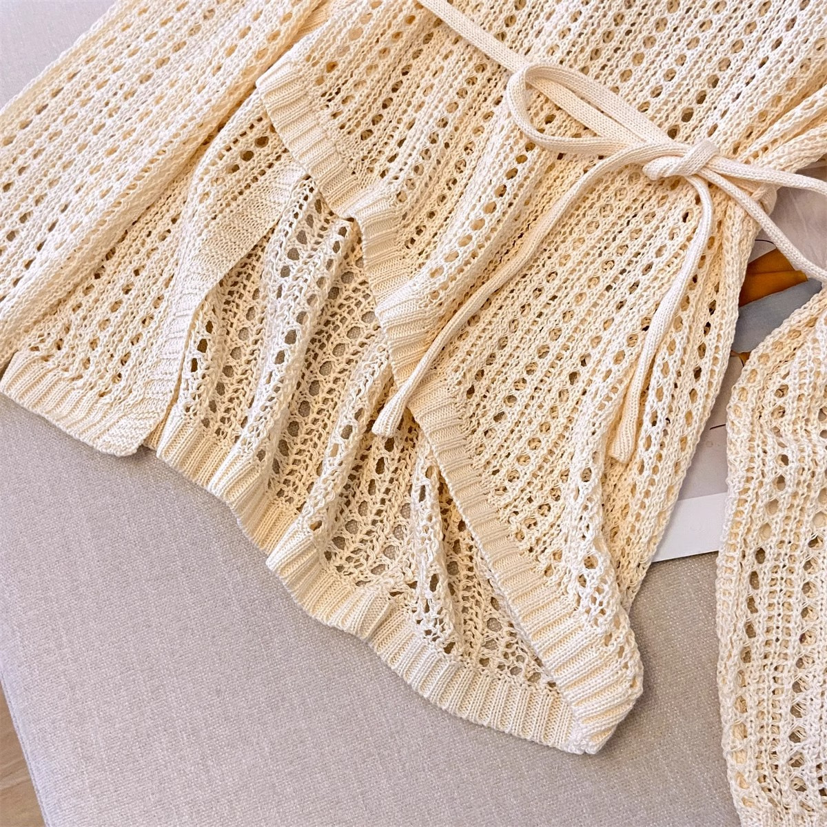불규칙한 크로 셰 뜨개질 빈 아이스 실크 니트 블라우스 롱 티셔츠 여성용 여름 게으른 에어컨 아우터 라운드 넥 탑스토어 가기