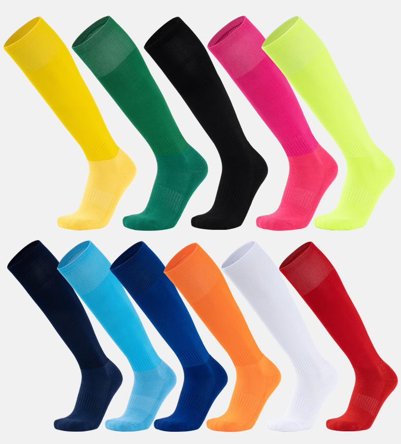 단색 축구 양말 남녀 스타킹 성인 무릎 두꺼운 수건 바닥 높은 튜브 학생 미끄럼 방지 훈련 양말 도매스토어 가기