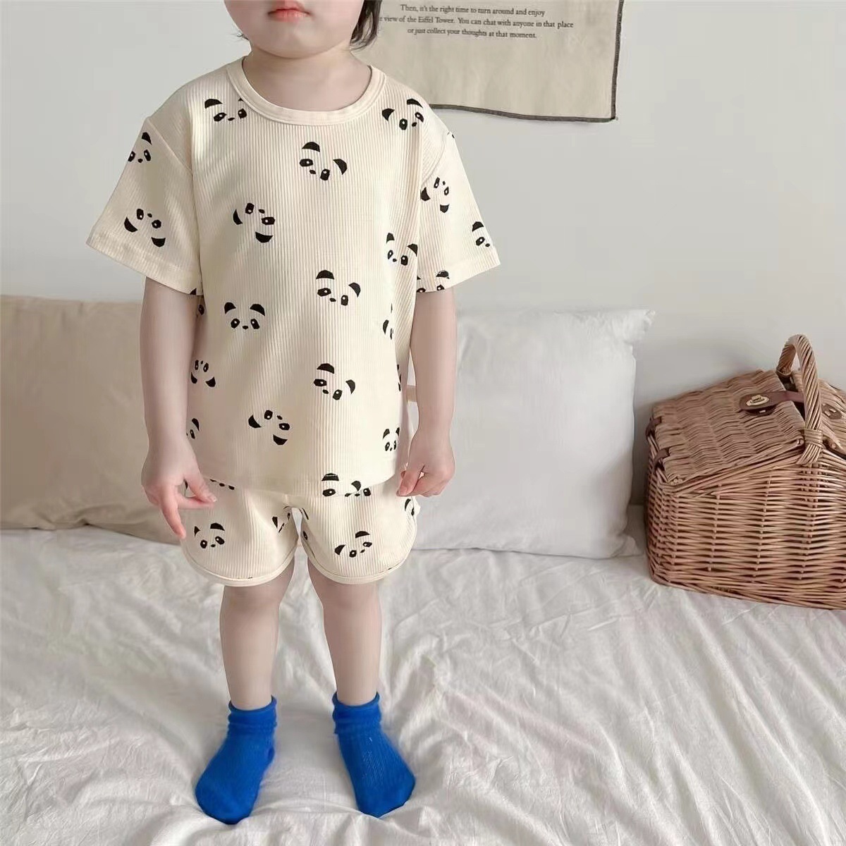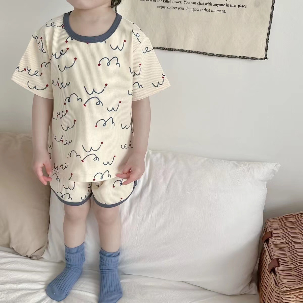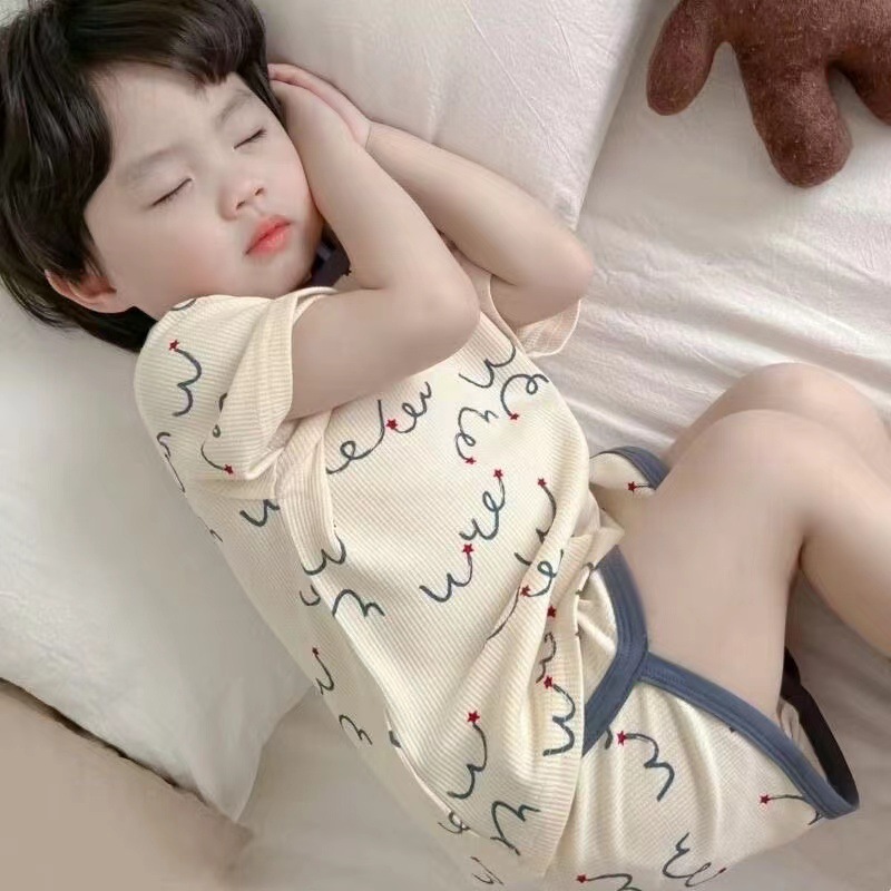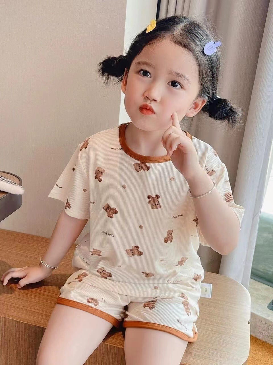 새로운 여름 남아 여아 잠옷, 아이스 실크 투피스 세트, 반팔 얇은 남아용 에어컨 홈웨어, 아동복 세트스토어 가기