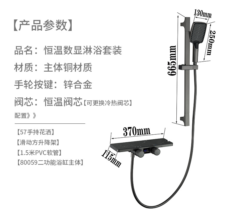 • [일정한 온도 디지털 디스플레이 3 기능] 샤워 스타일-57 샤워 시리즈