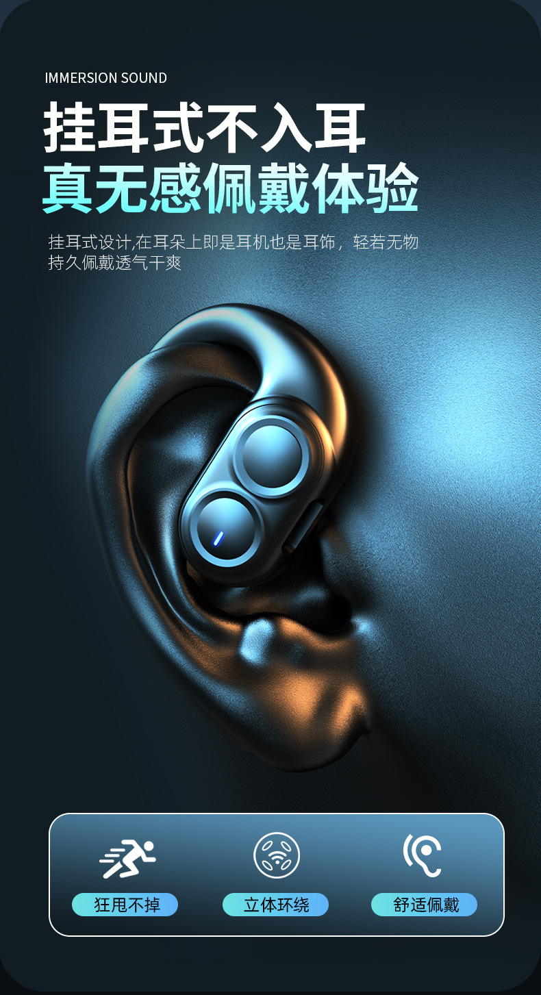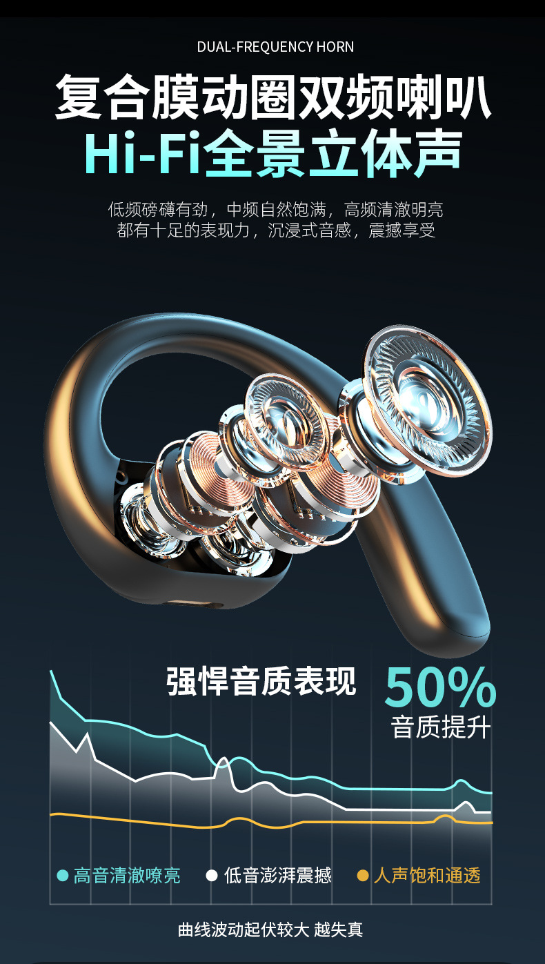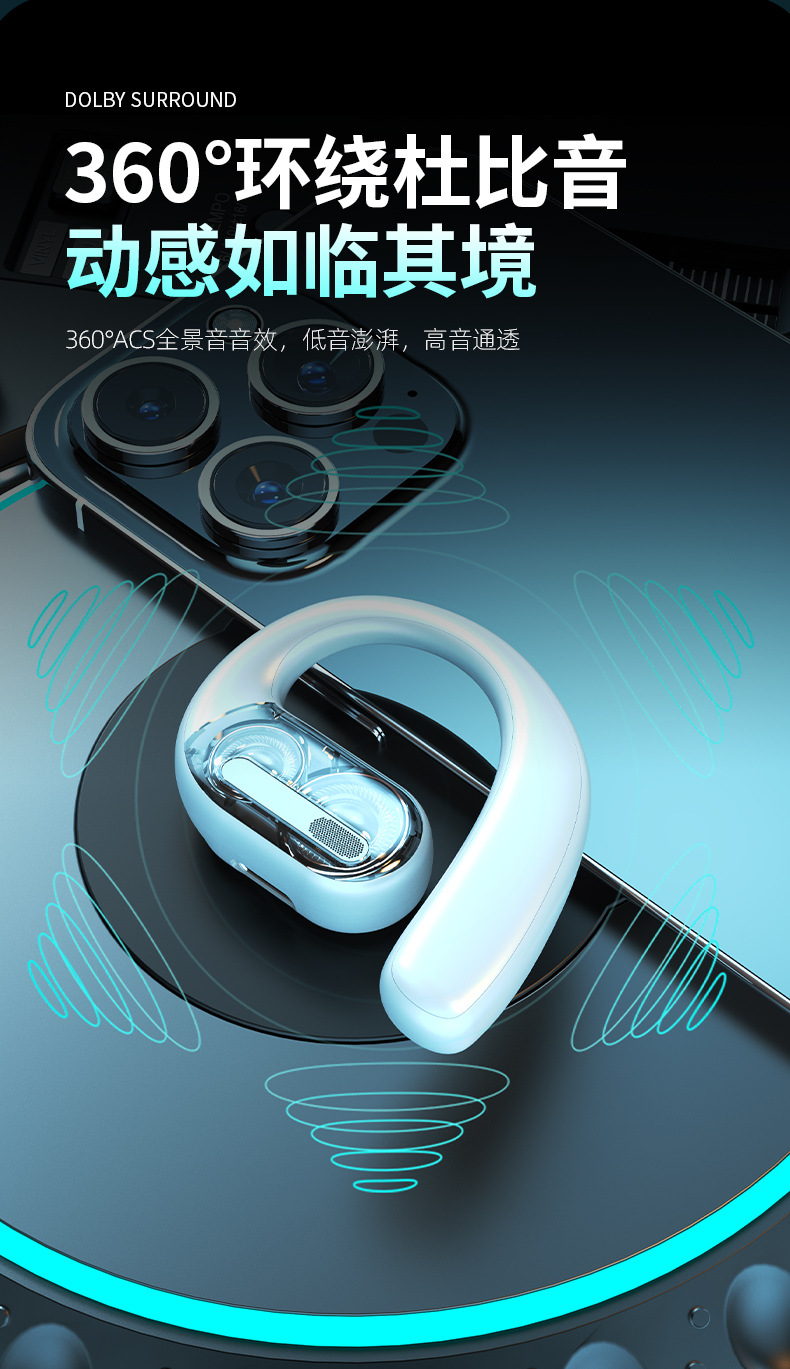 LX09 새로운 블루투스 헤드셋 단일 귀 오른쪽 귀 듀얼 스피커 스테레오 OWS 외부 귀 교수형 귀 귀 교차 테두리