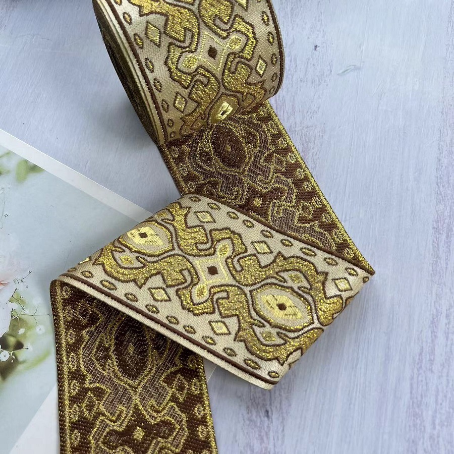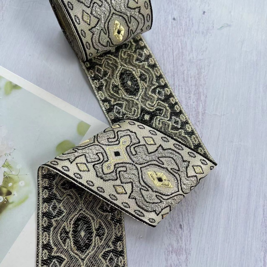 자카드 커튼 레이스 골드 및 실버 토템 패턴 커튼 패브릭 액세서리 AH-2829 6CM 와이드