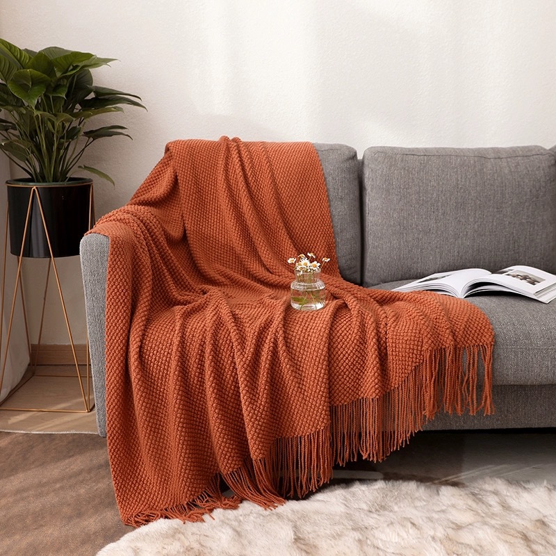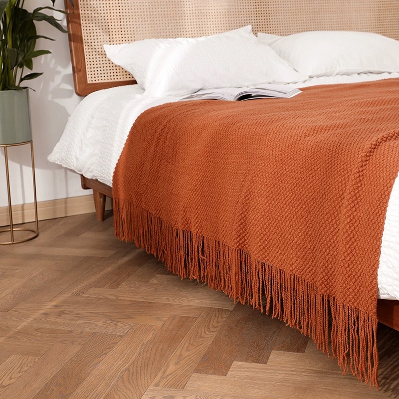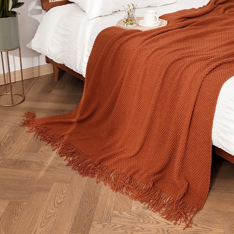 款式莫兰迪纯色针织毯
