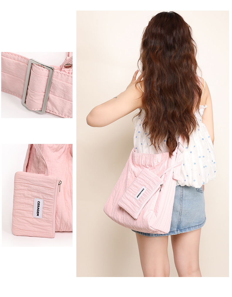 한국 스타일 주름 가방 여성용 2026 신상 대용량 버킷백 크로스백 인스타 감성 니치 숄더백 토트백
