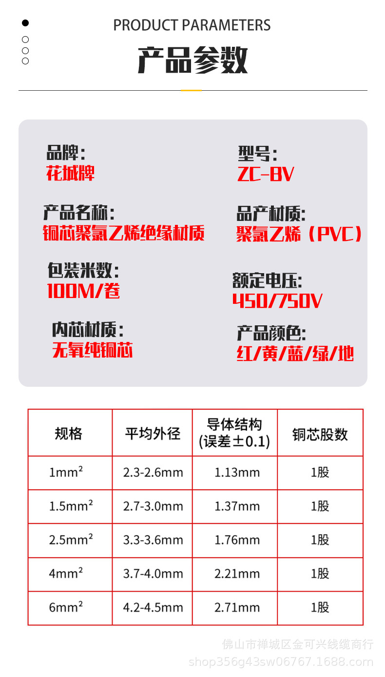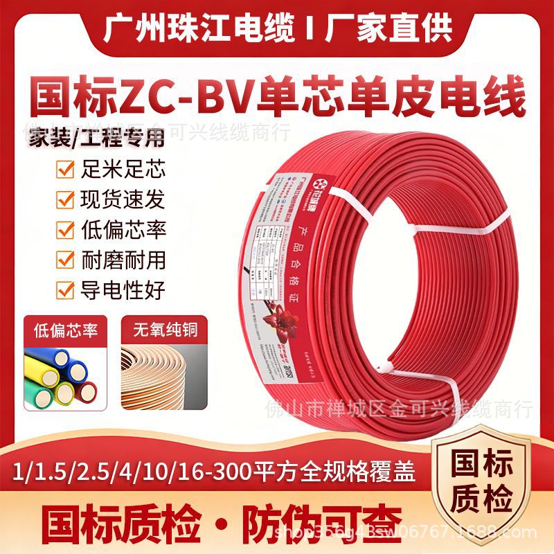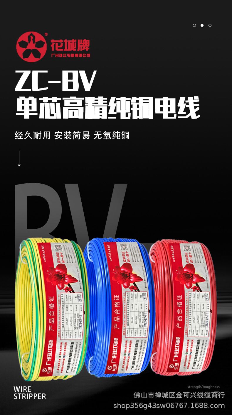 国标ZC-BV花城珠江电线 家装1.5/2.5/4/6/10/16平铜芯阻燃电缆线