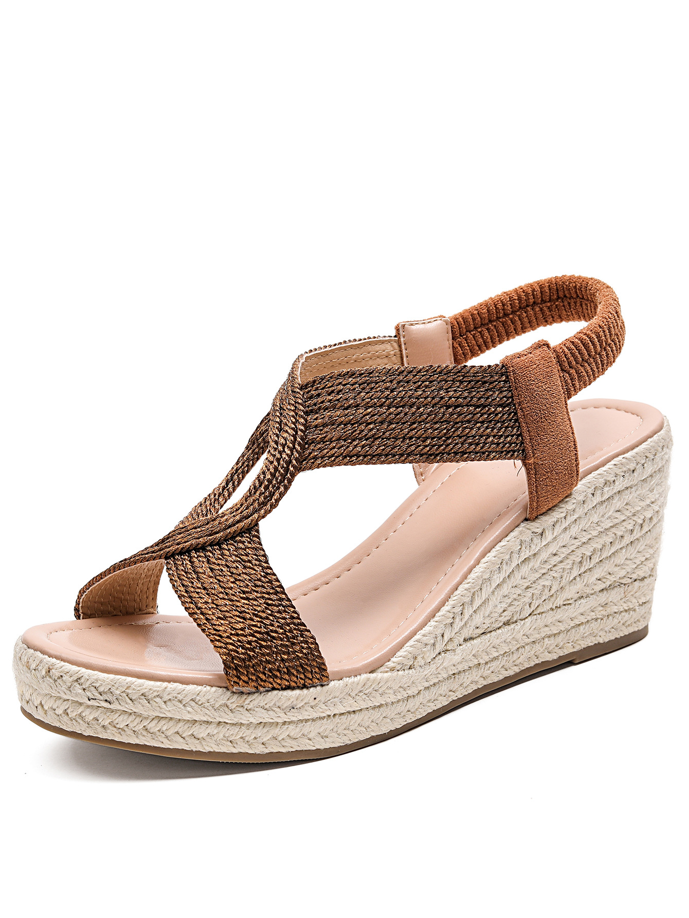 대외 무역 두꺼운 밑창 웨지 샌들 여성 캐주얼 패션 짠 대마 로프 여성 신발 유럽과 미국은 발가락 여성 신발 로마 샌들