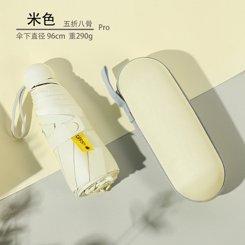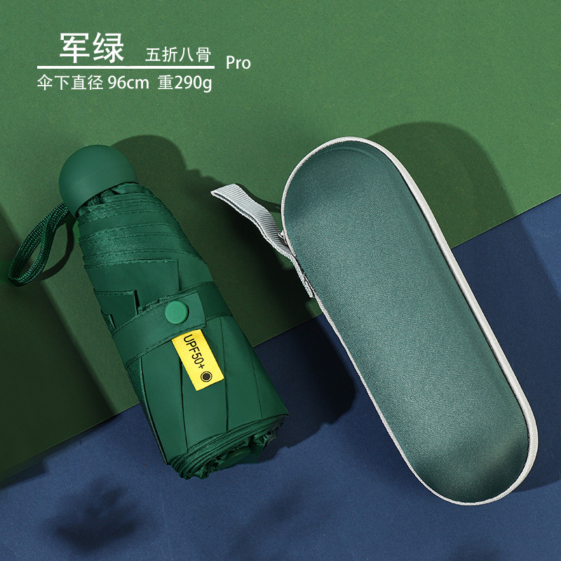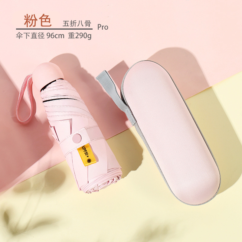 우산 도매 접이식 5 배 우산 휴대용 미니 캡슐 우산 맑고 비 이중 사용 태양 우산 학생 태양 보호 태양 우산