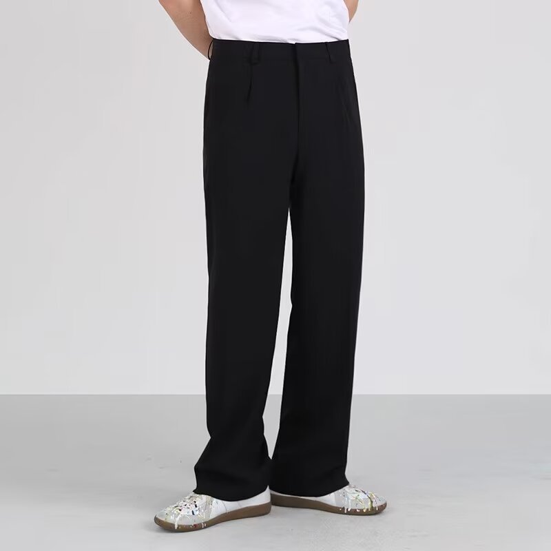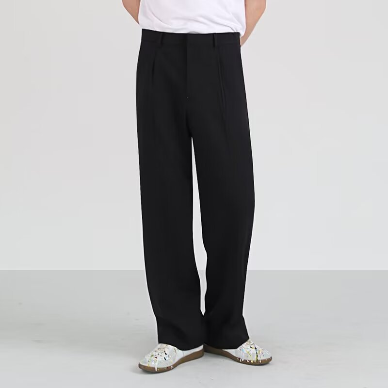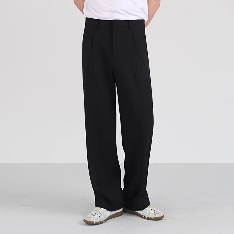 드레이프 스트레이트 팬츠 남성 와이드 레그 2024 봄 가을 루즈핏 스포츠 캐주얼 롱 팬츠 트렌디 스몰 슈트 팬츠