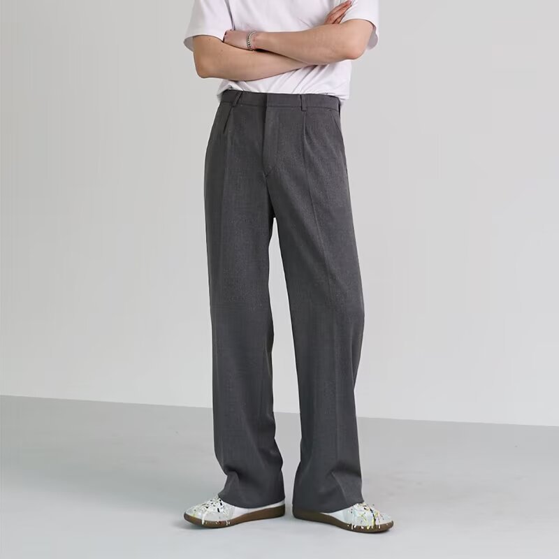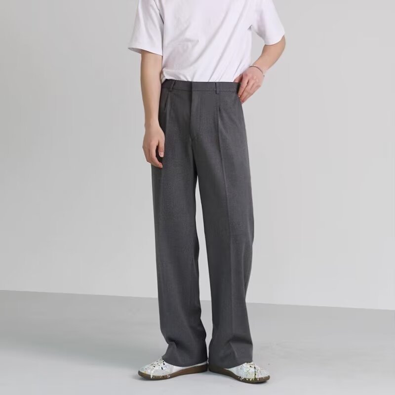 드레이프 스트레이트 팬츠 남성 와이드 레그 2024 봄 가을 루즈핏 스포츠 캐주얼 롱 팬츠 트렌디 스몰 슈트 팬츠스토어 가기