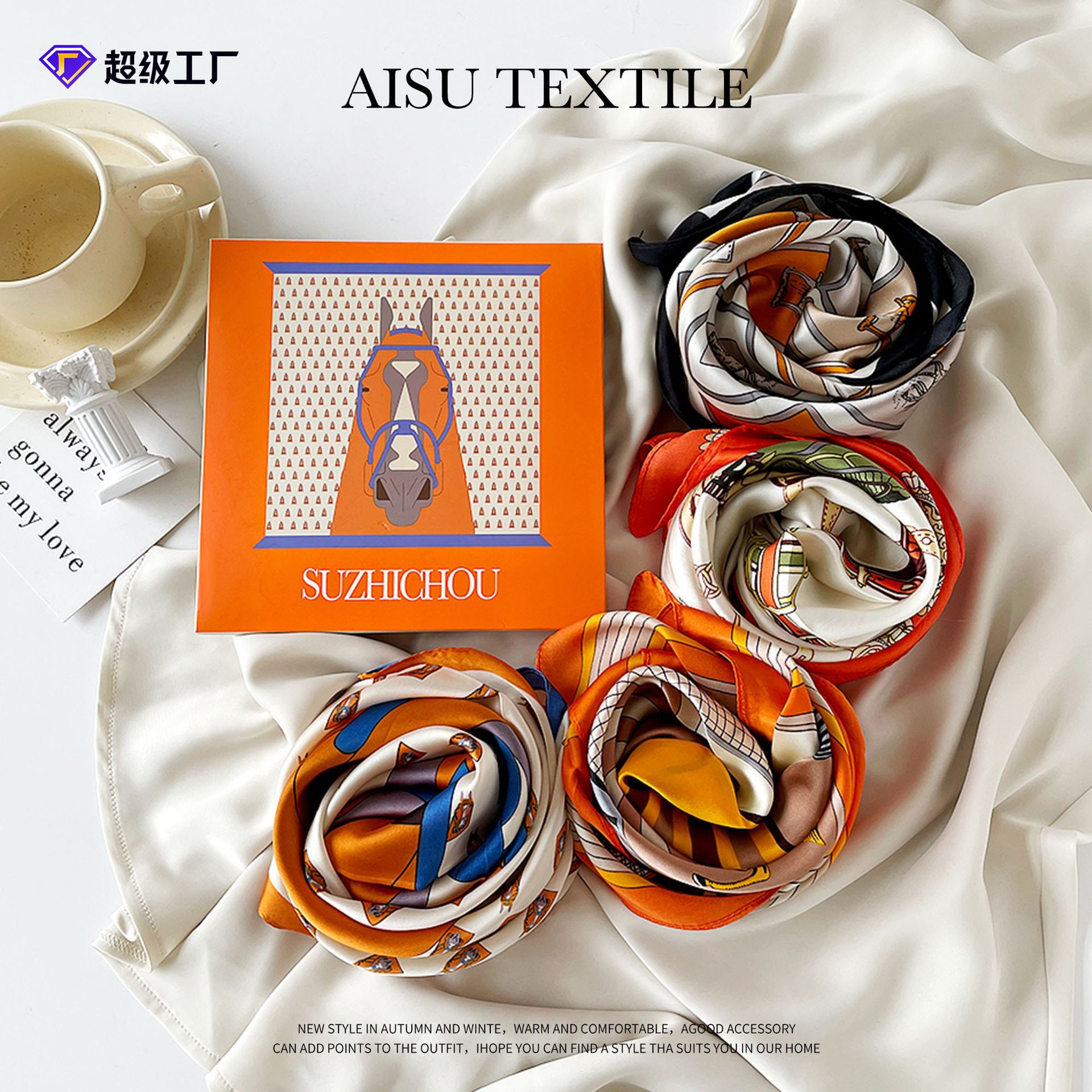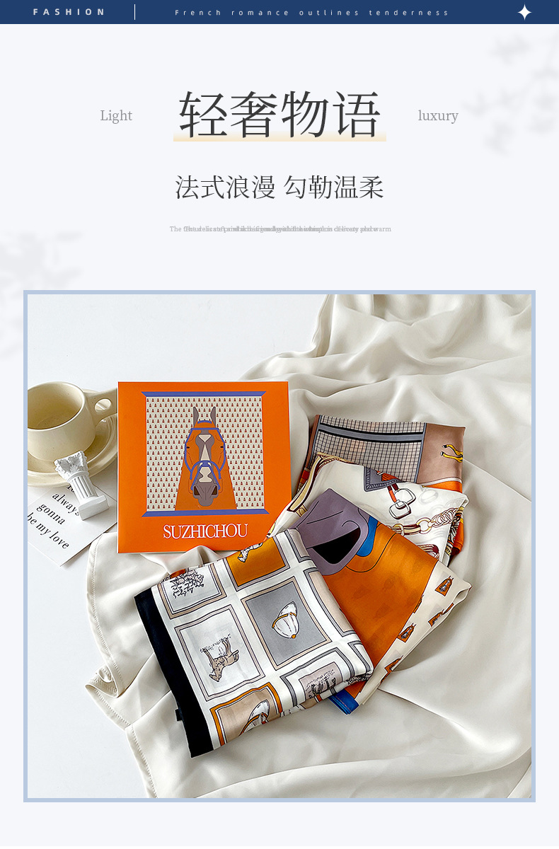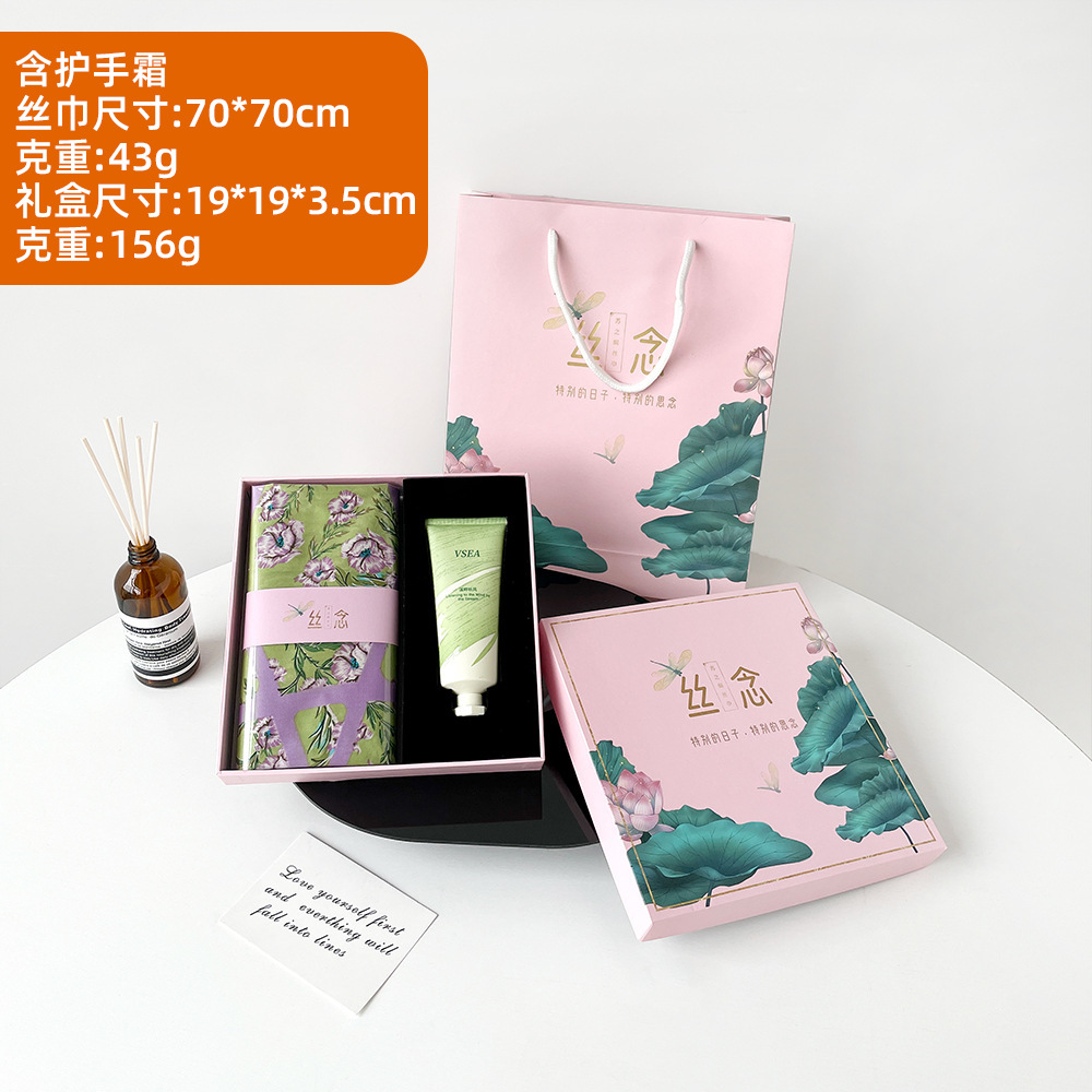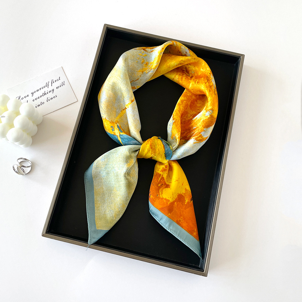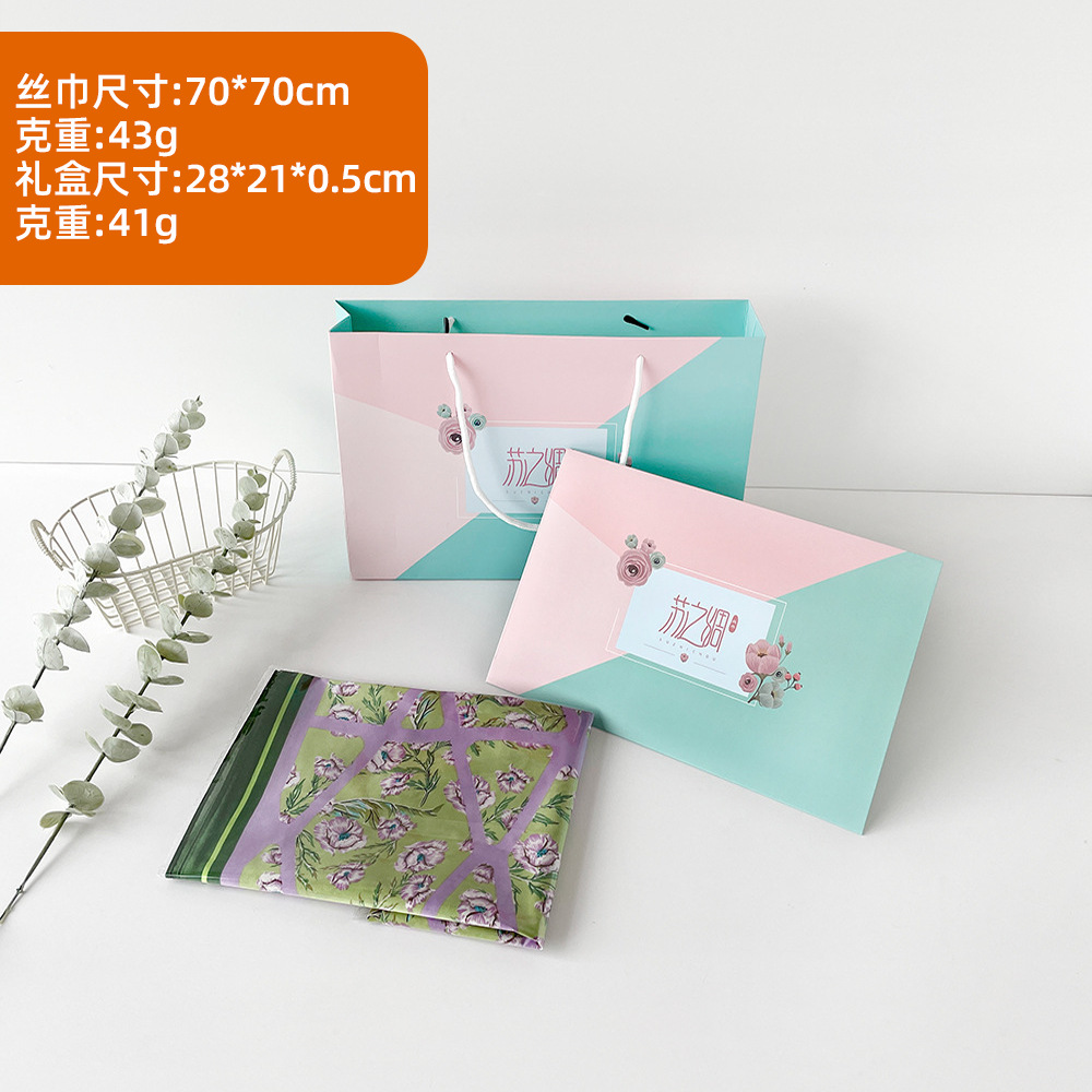 스지 실크 선물 상자 작은 실크 스카프 여성 사랑 말 오렌지 새로운 스타일 모방 실크 스퀘어 스카프 패션 스카프 고급 스카프 세트스토어 가기