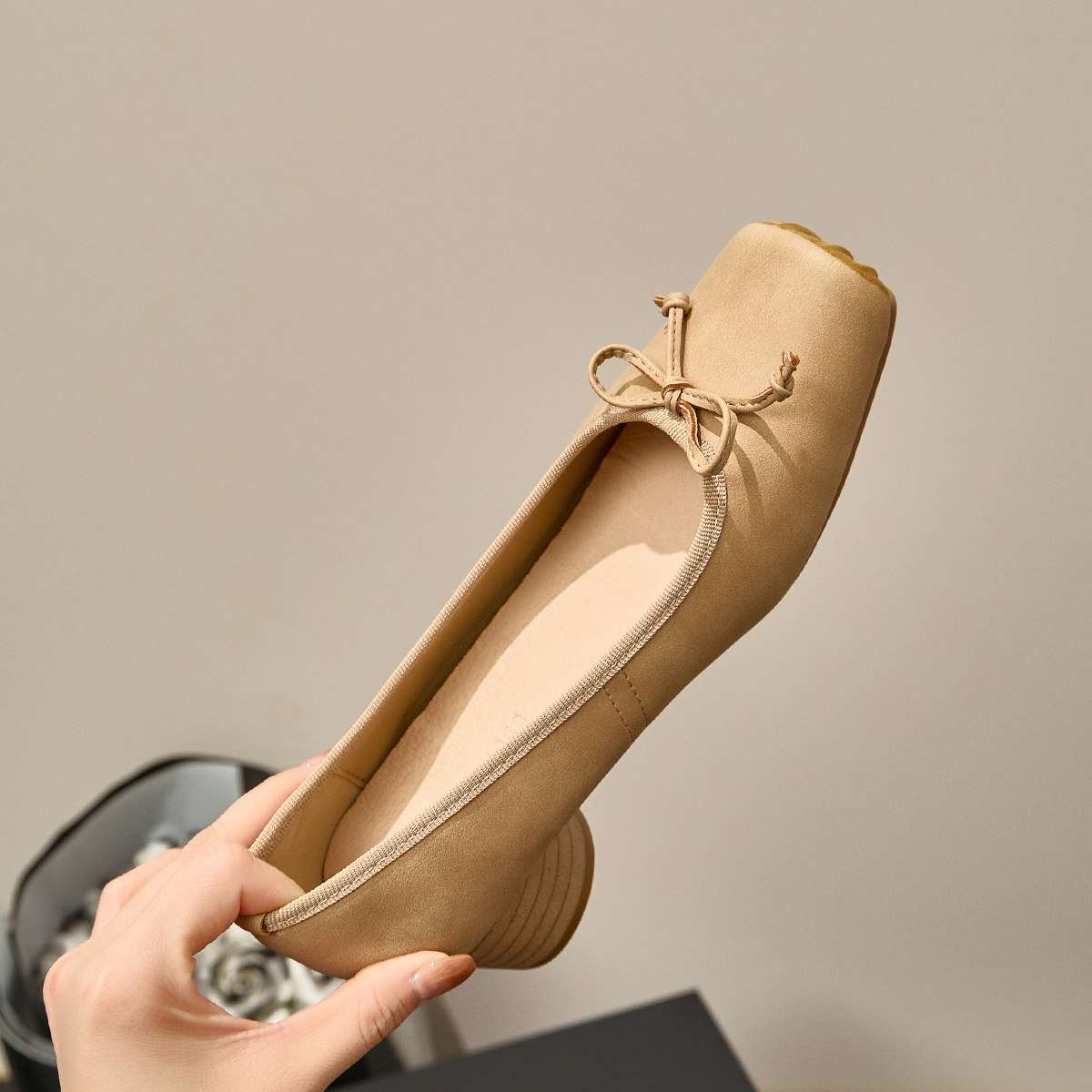 가죽 발레 신발 겉옷 두껍게 굽은 광장 발가락 메리 제인 신발 프랑스 빈티지 싱글 레이어 신발 미드 힐 발레 신발스토어 가기