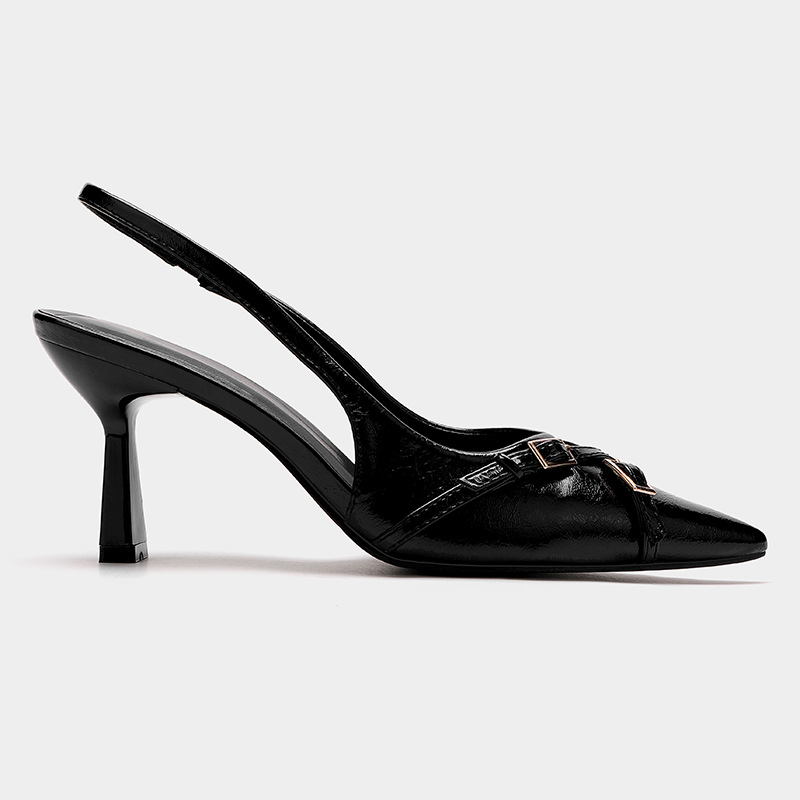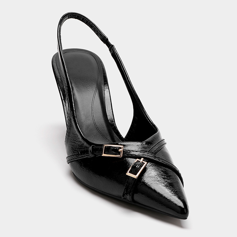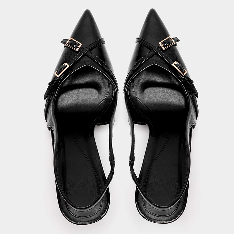 Yuanshi Shengmei 신발 공장 2024 새로운 스타일 고양이 힐 바오 터우 하이힐 여성 싱글 신발 포인팅 힐 크로스 스트랩 샌들 여성용스토어 가기