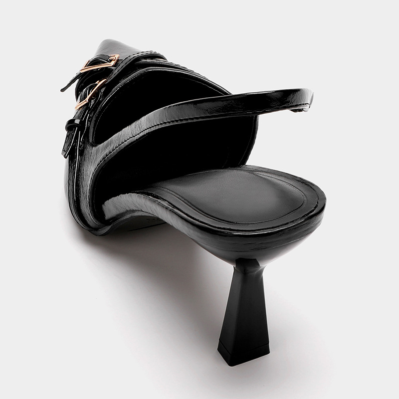 Yuanshi Shengmei 신발 공장 2024 새로운 스타일 고양이 힐 바오 터우 하이힐 여성 싱글 신발 포인팅 힐 크로스 스트랩 샌들 여성용