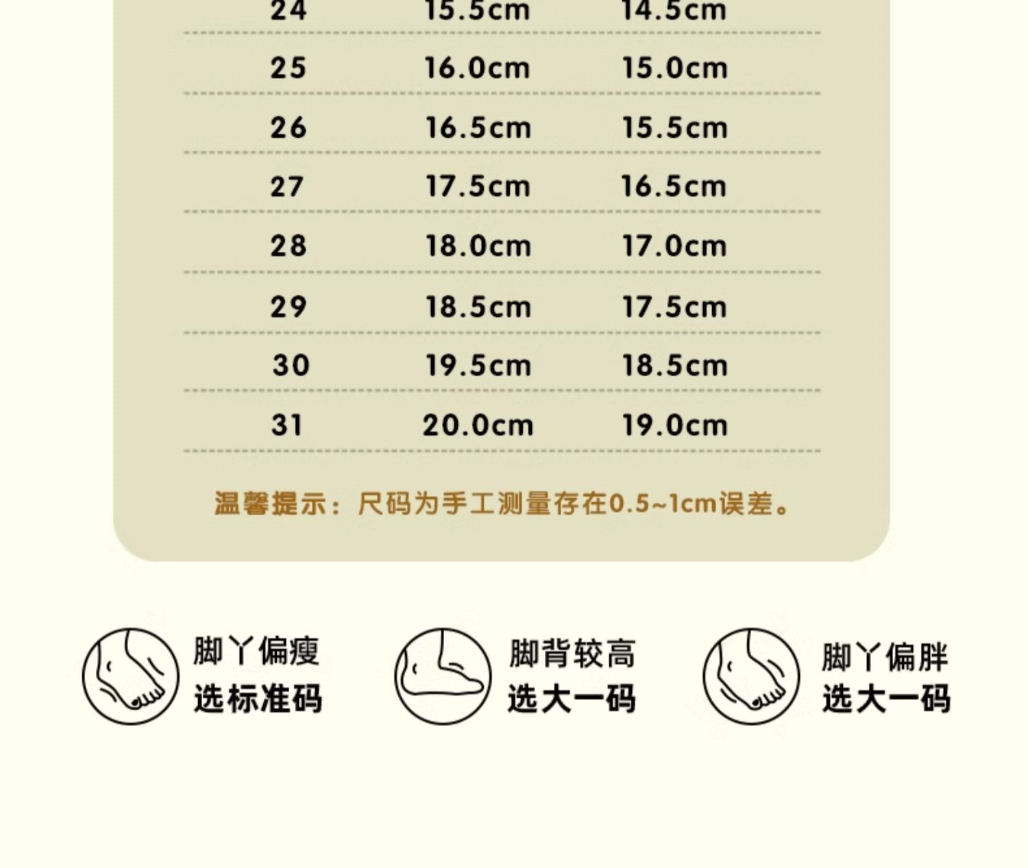 • 25 내부 길이 16.5cm, 권장 발 길이 15.5cm