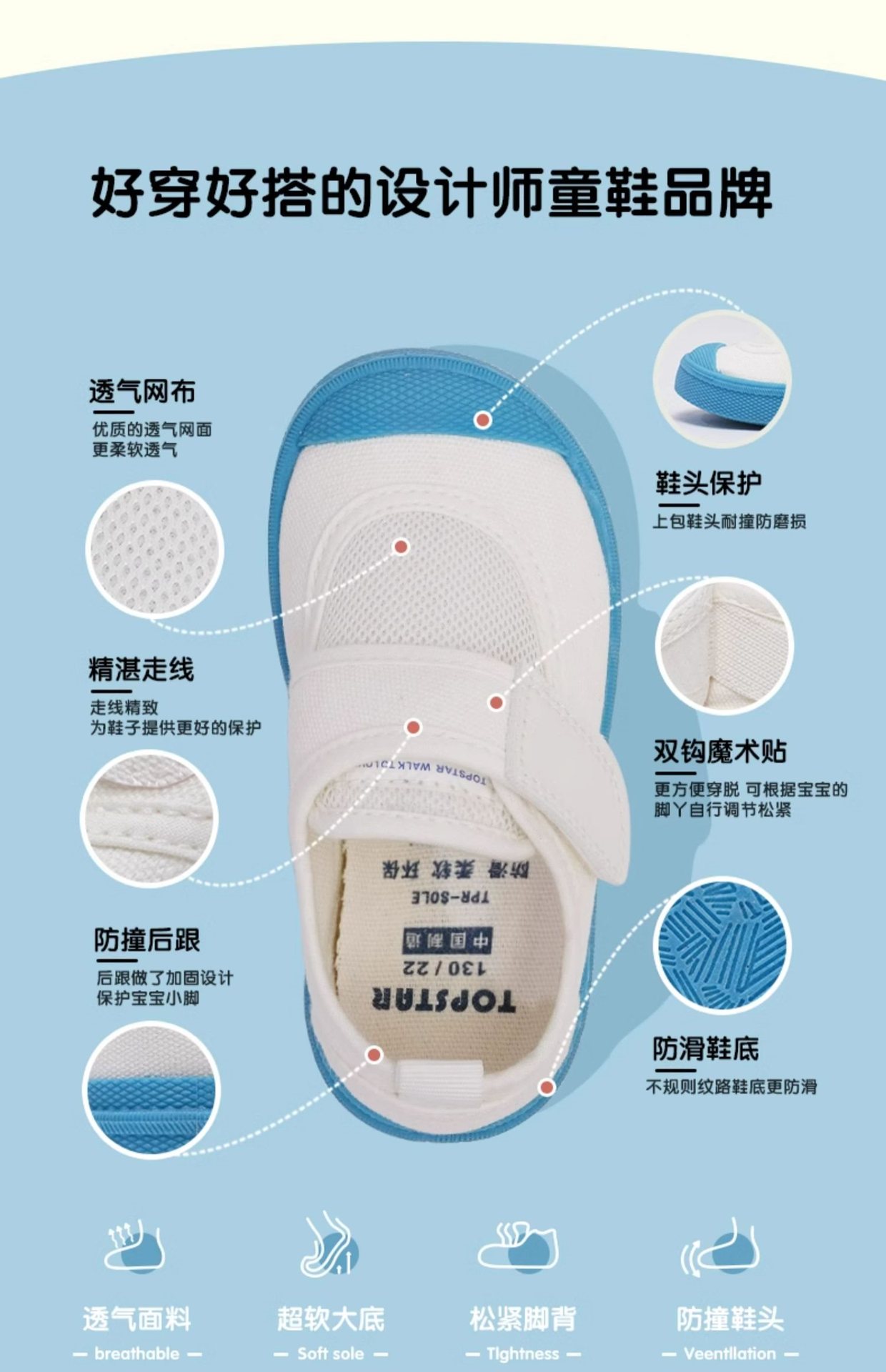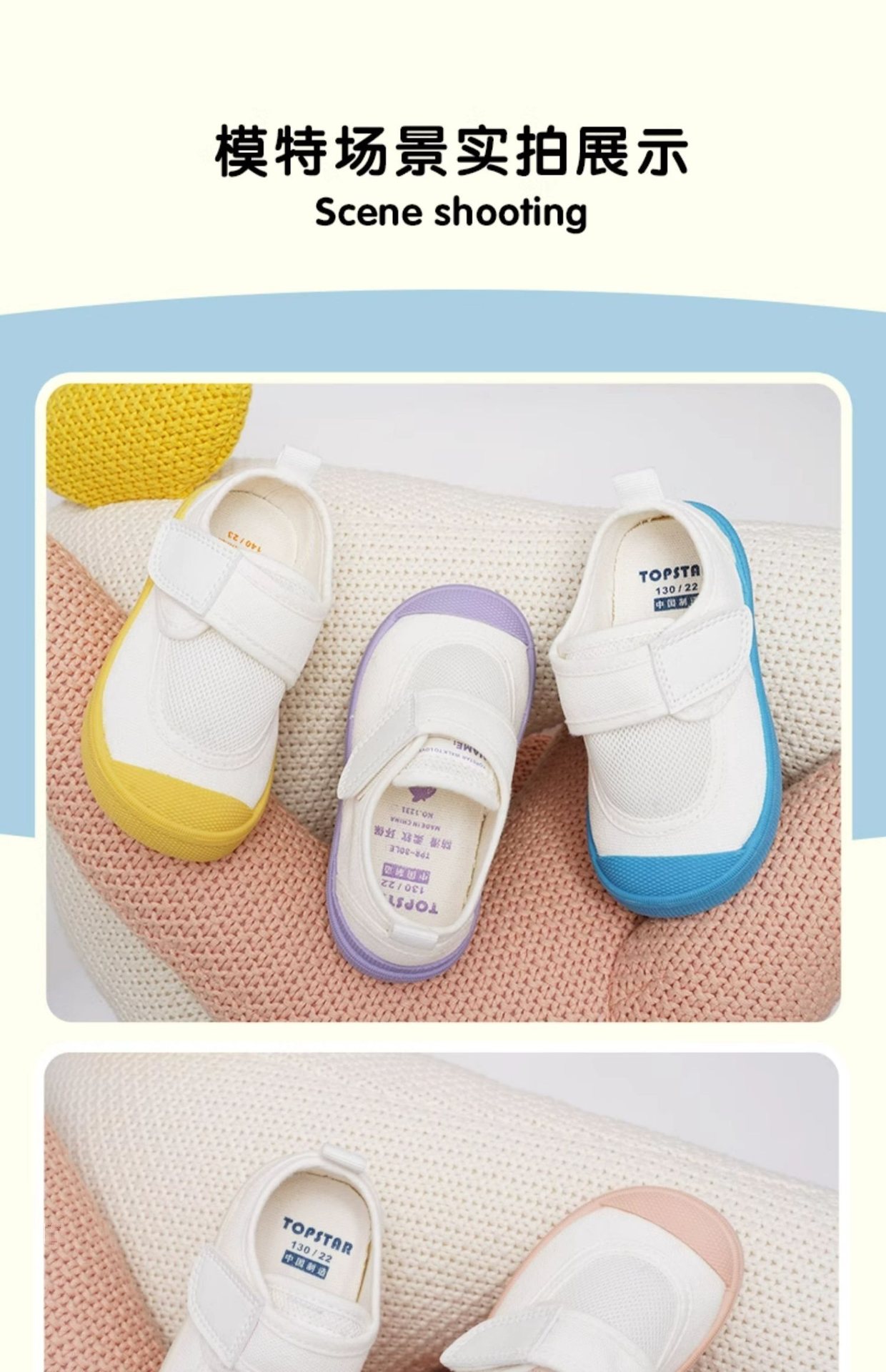 TOPSTAR 어린이 캔버스 신발 소년 유치원 흰색 신발 소녀 아기 실내 신발 부드러운 밑창 천 신발 어린이 신발스토어 가기