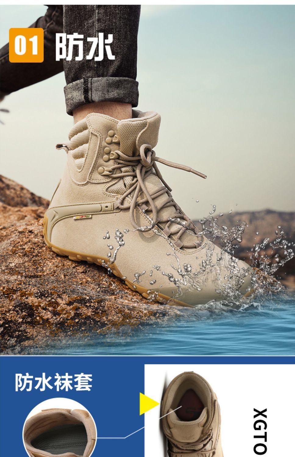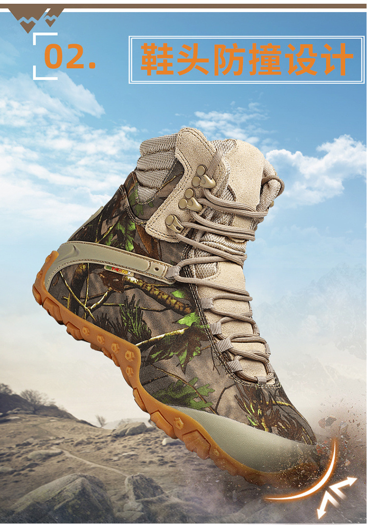 Xsz 야외 하이탑 하이킹 신발 여성용 방수 미끄럼 방지 위장 하이킹 신발 남성 소 가죽 사막 부츠 여성용 하이킹 신발