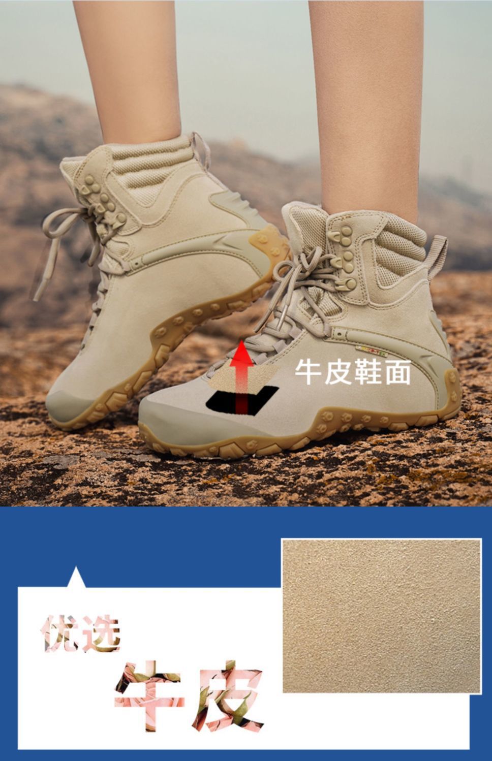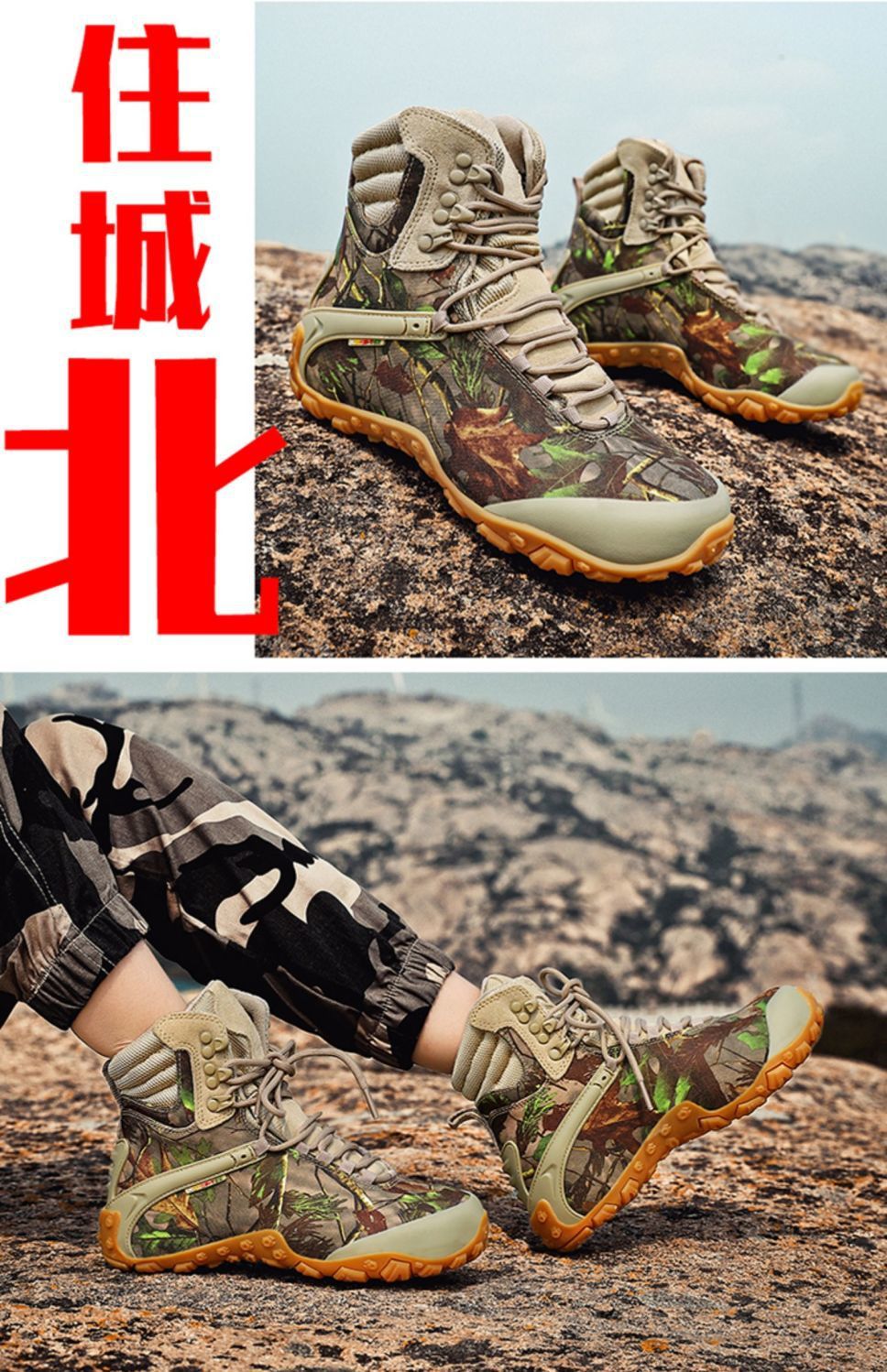Xsz 야외 하이탑 하이킹 신발 여성용 방수 미끄럼 방지 위장 하이킹 신발 남성 소 가죽 사막 부츠 여성용 하이킹 신발스토어 가기