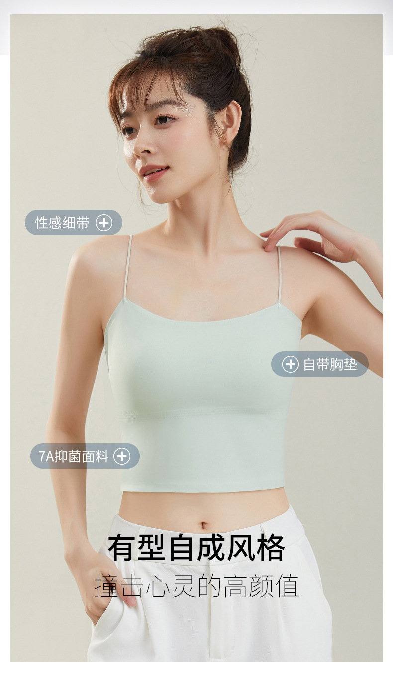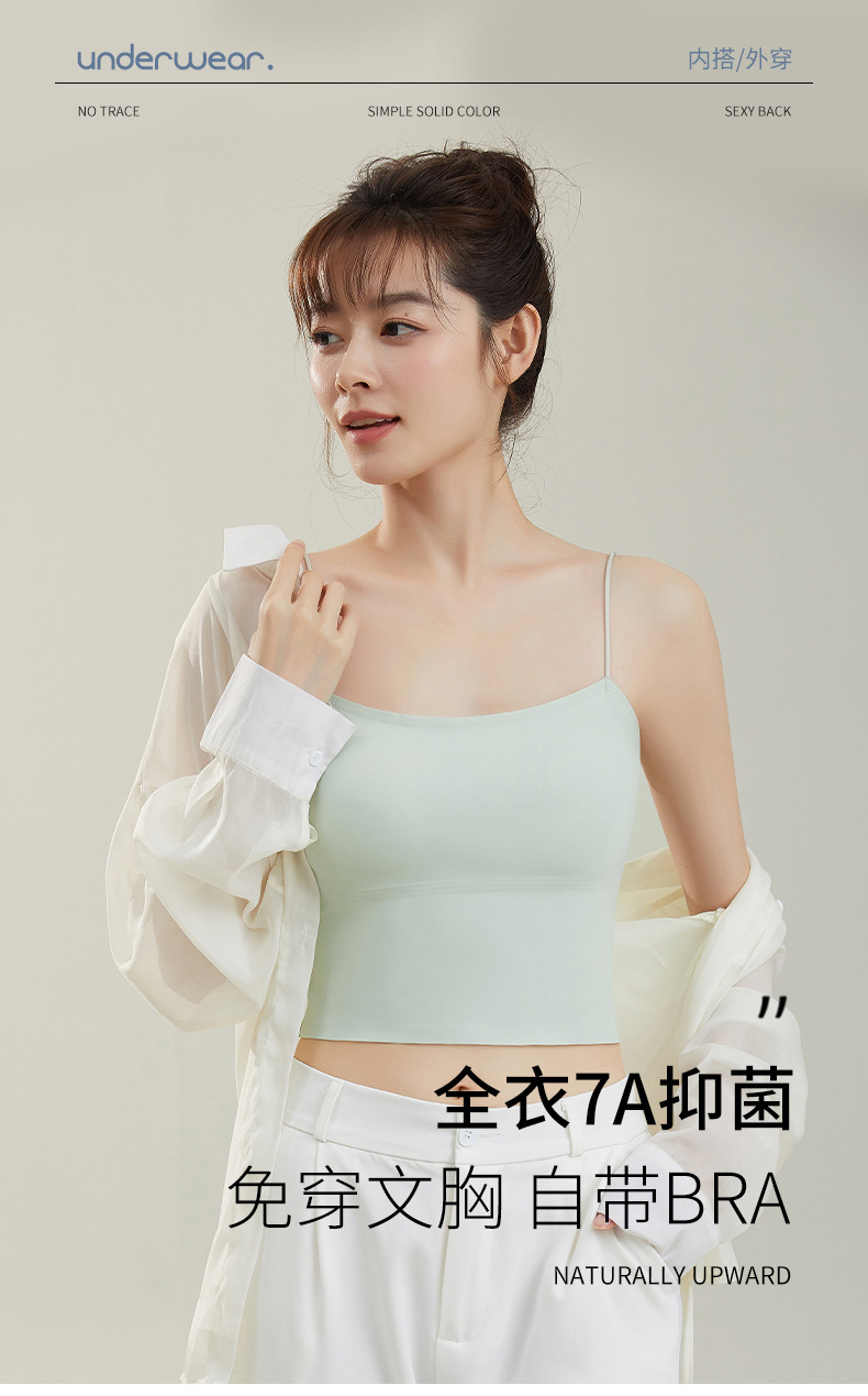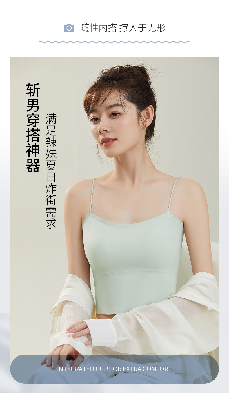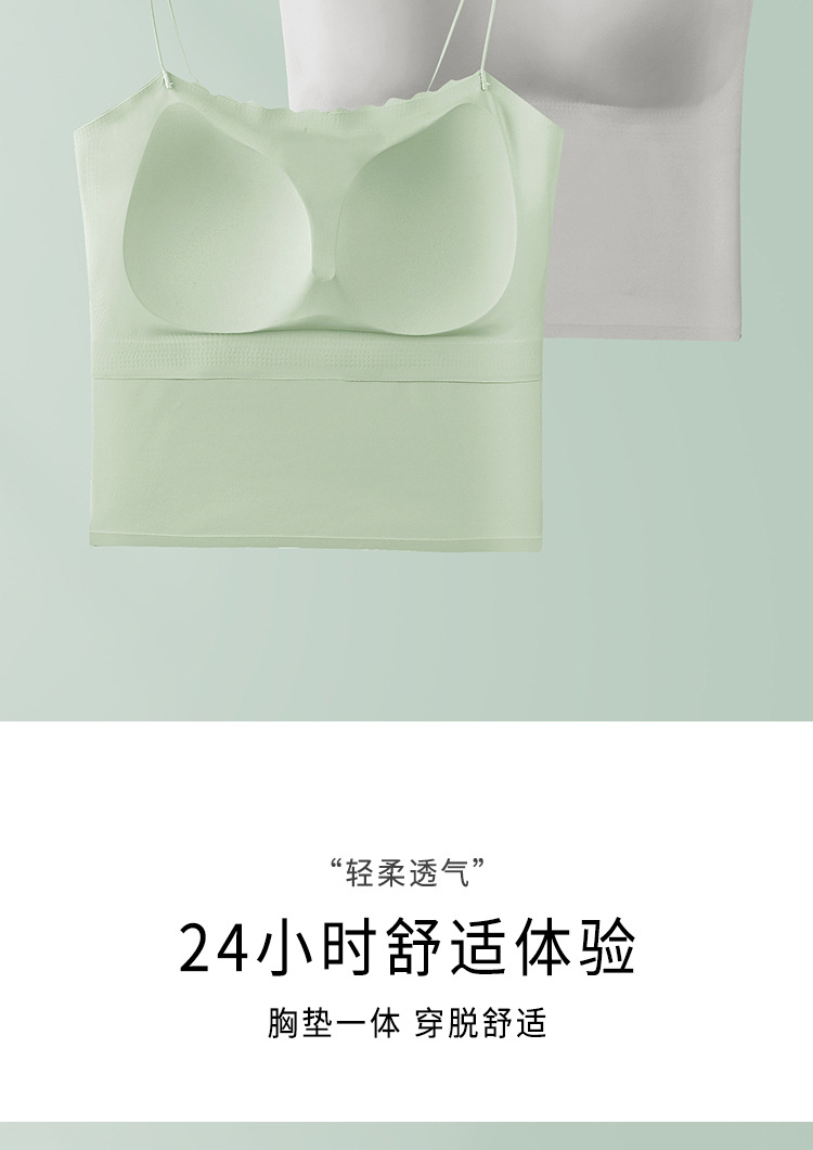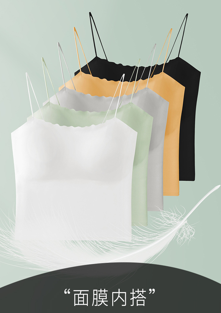 7A 항균 카미 솔 작은 조끼 아름다운 뒤 얼음 실크 내부 랩 가슴 패드 통합 고정 컵 착용-프리 브라 튜브 탑 속옷스토어 가기