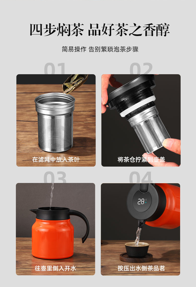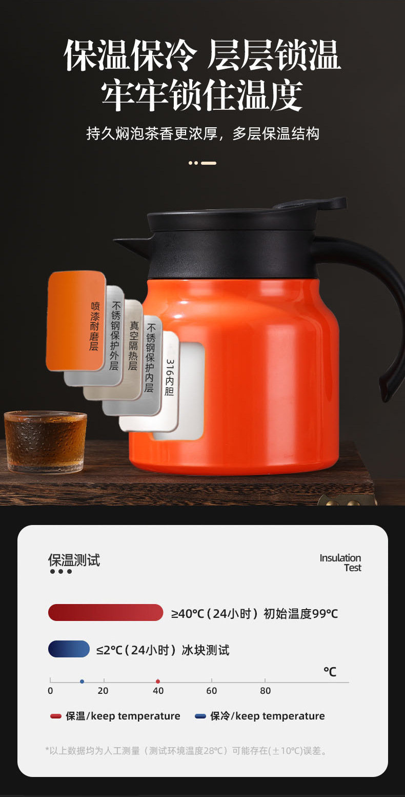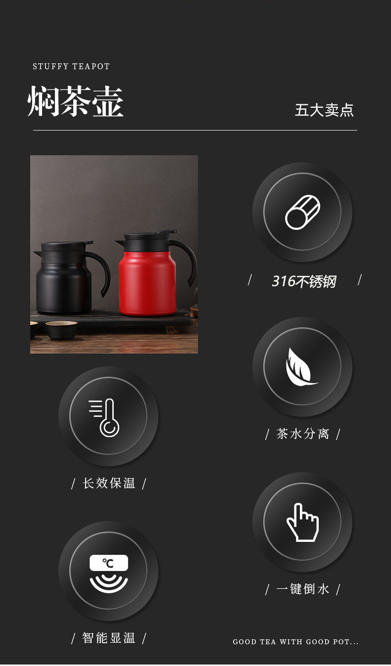 열 보존 스튜 주전자 가정용 316 스테인레스 스틸 버블 포트 대용량 온도 디스플레이 열 보존 냄비 차 물 분리 커피 포트스토어 가기
