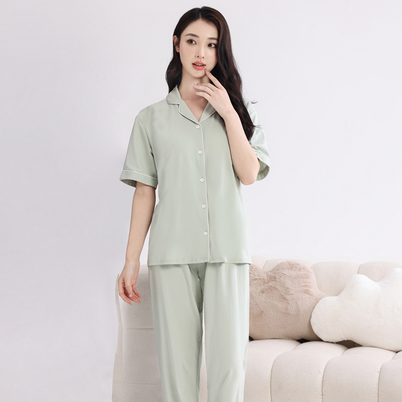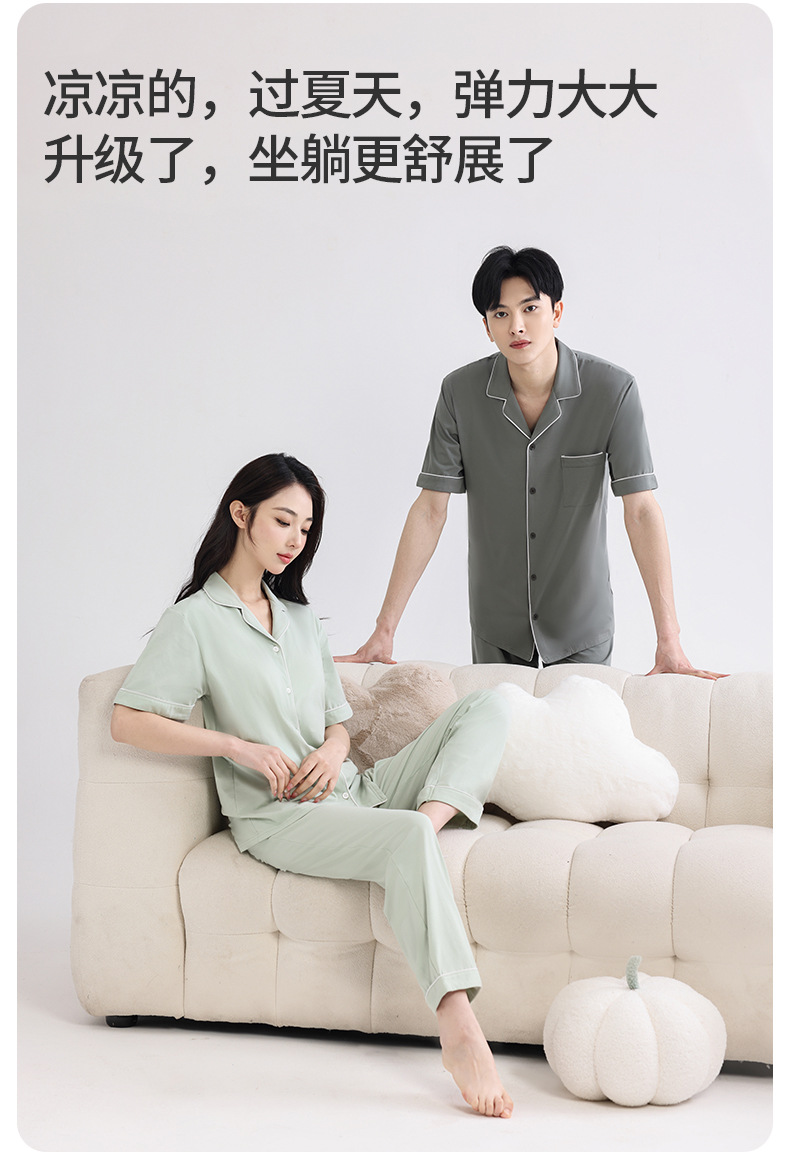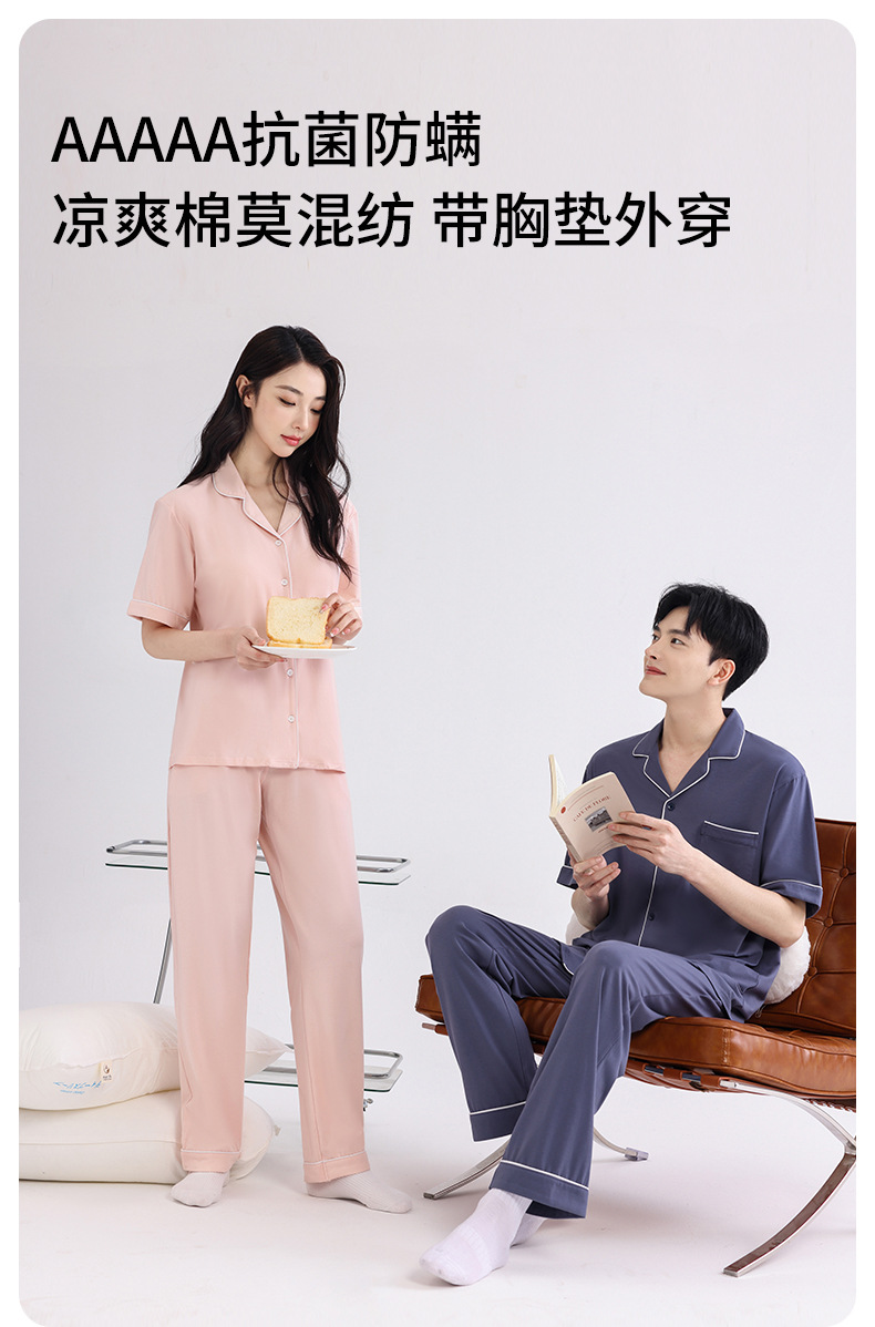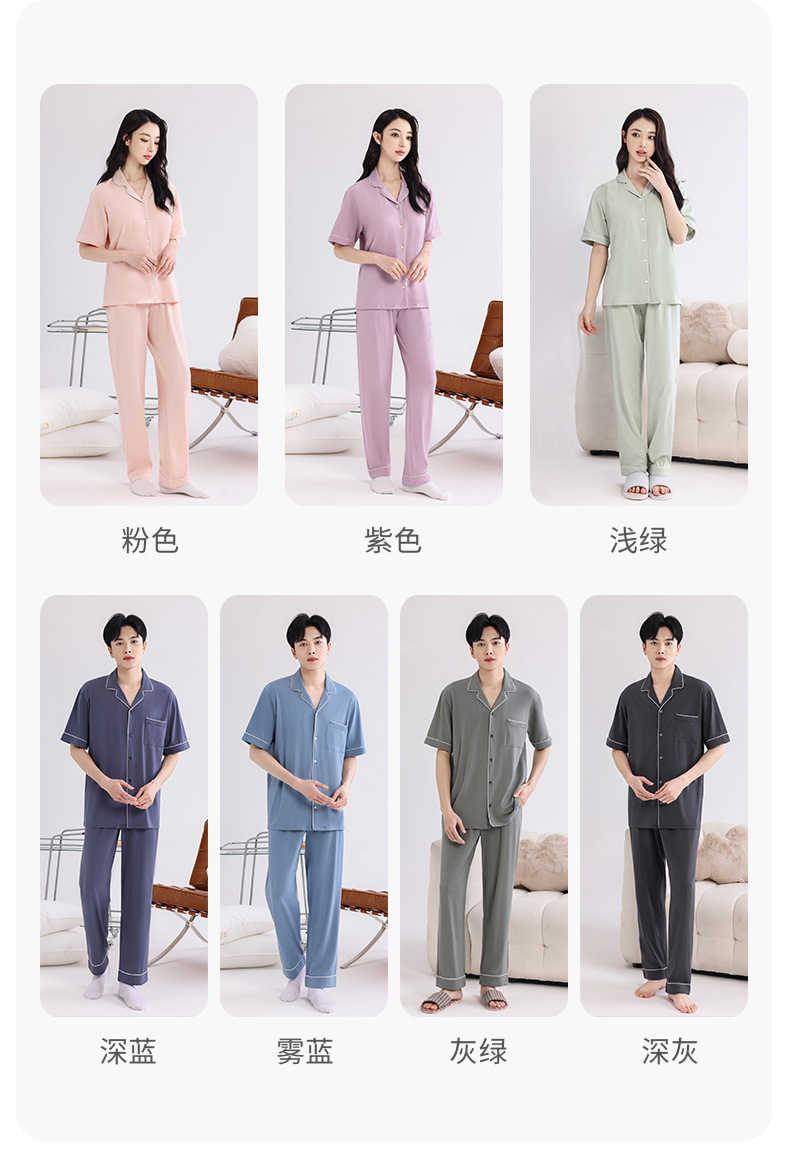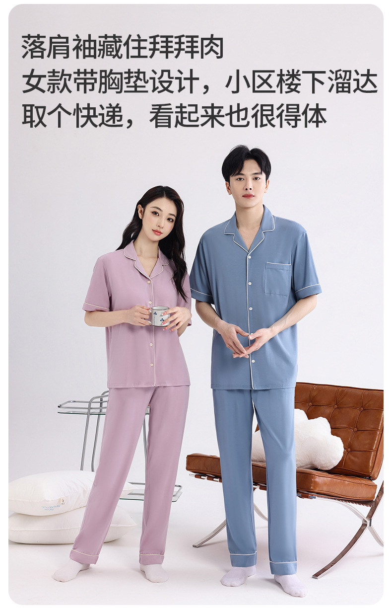 커플의 잠옷 옷깃 반팔 봄 및 여름 쿨 코튼 모달 남자의 여름 얇은 여성 홈 옷 투피스 세트스토어 가기