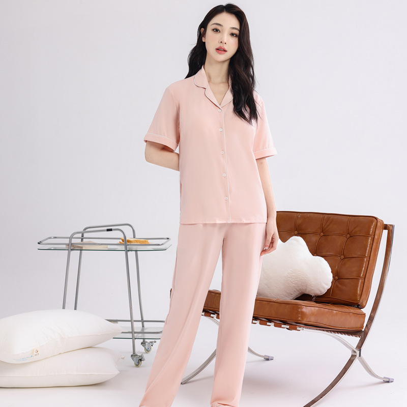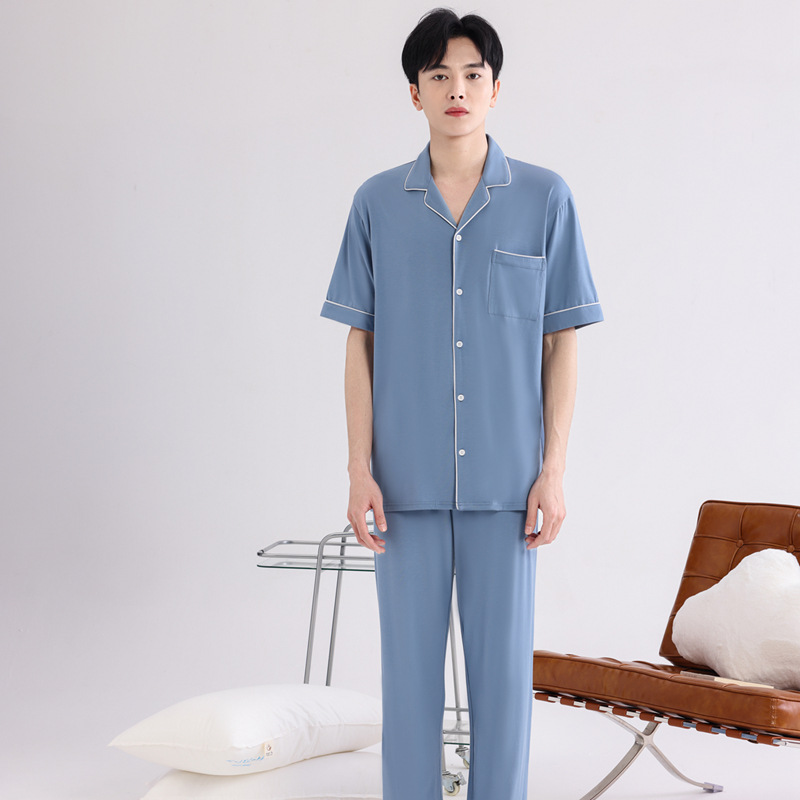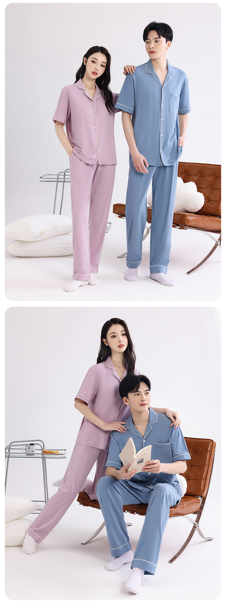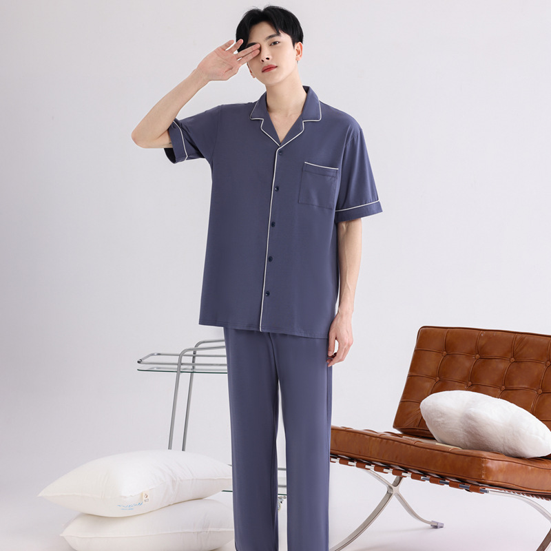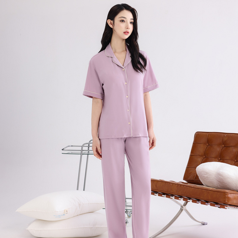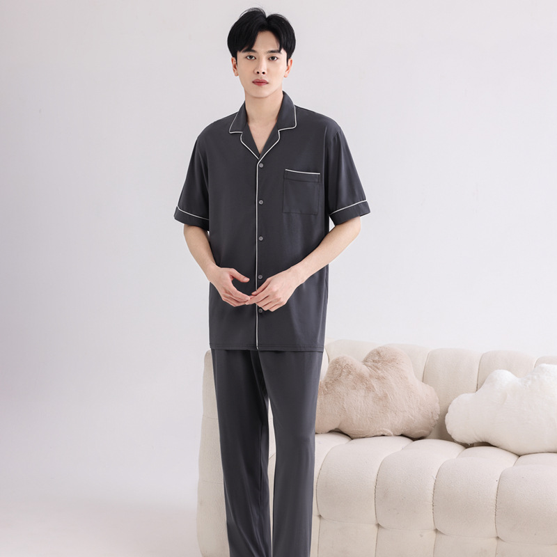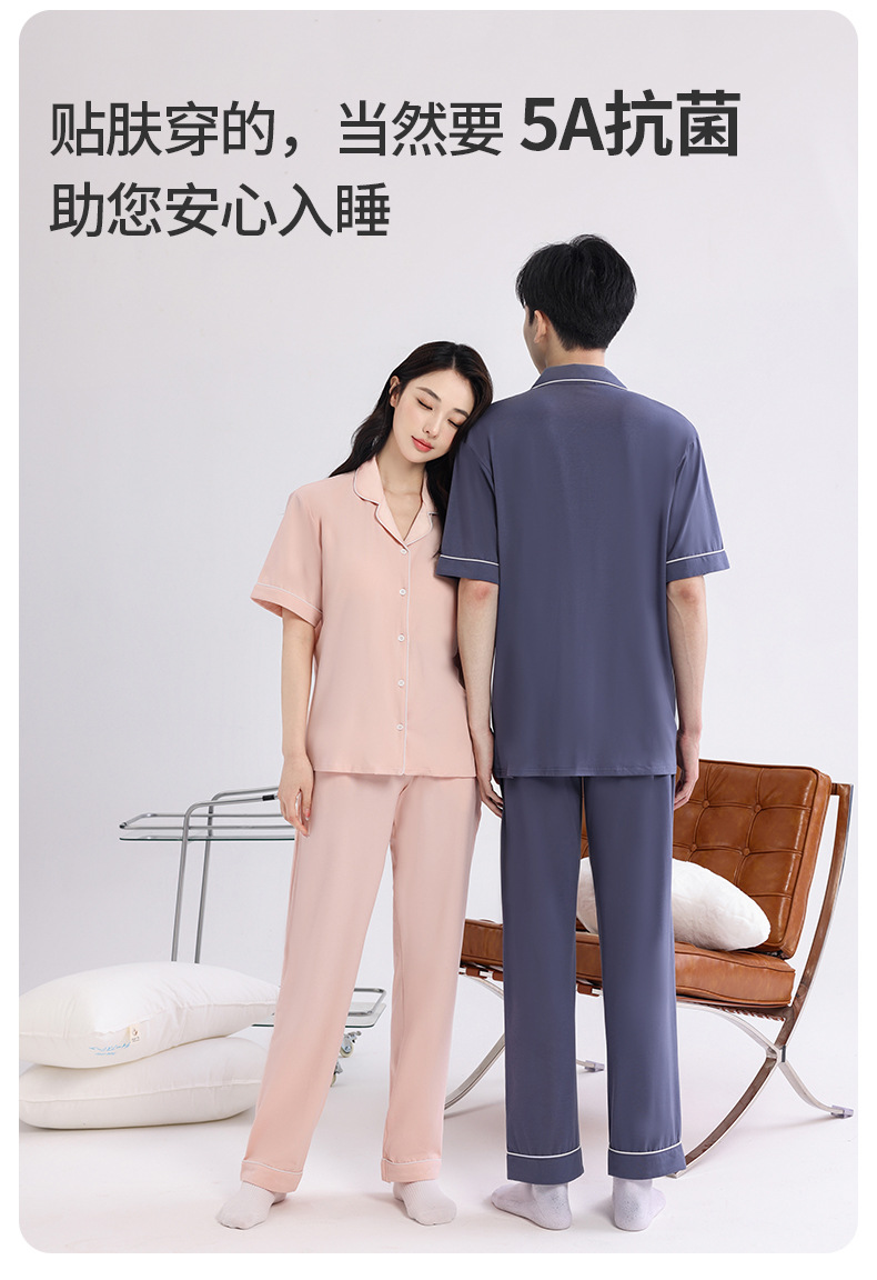 커플의 잠옷 옷깃 반팔 봄 및 여름 쿨 코튼 모달 남자의 여름 얇은 여성 홈 옷 투피스 세트스토어 가기