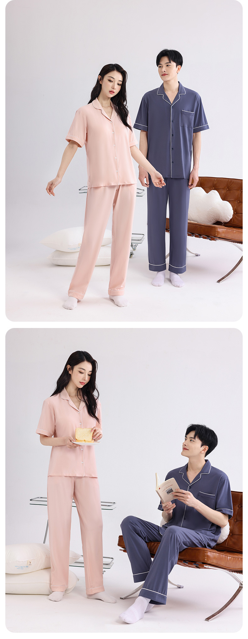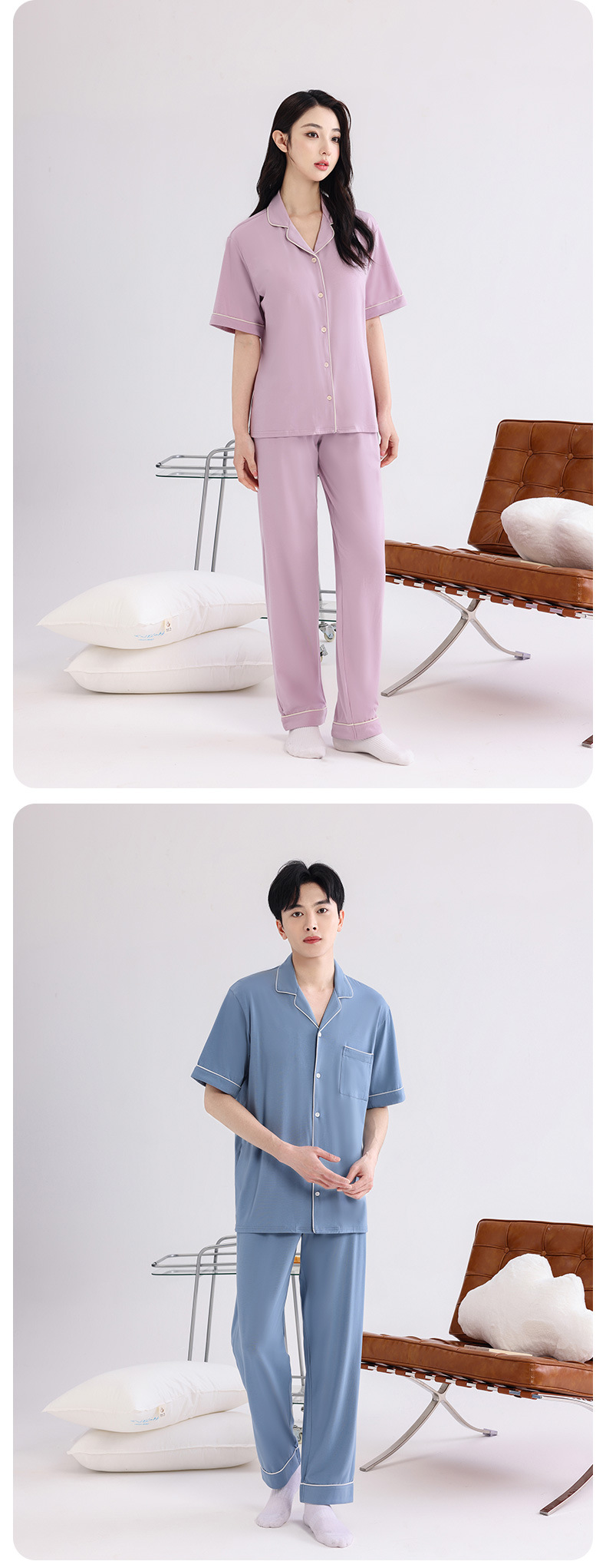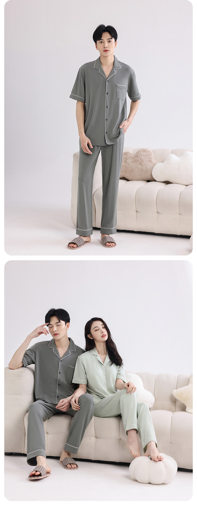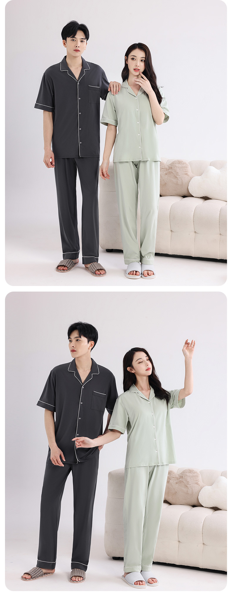 커플의 잠옷 옷깃 반팔 봄 및 여름 쿨 코튼 모달 남자의 여름 얇은 여성 홈 옷 투피스 세트스토어 가기