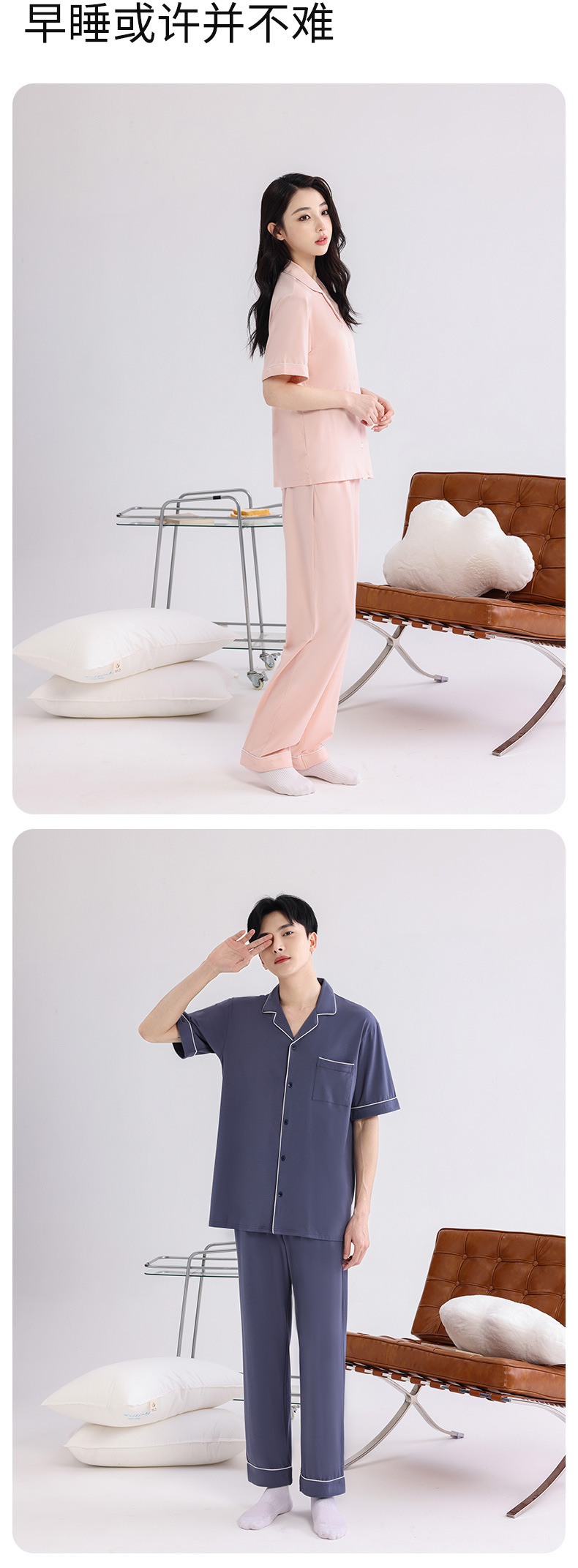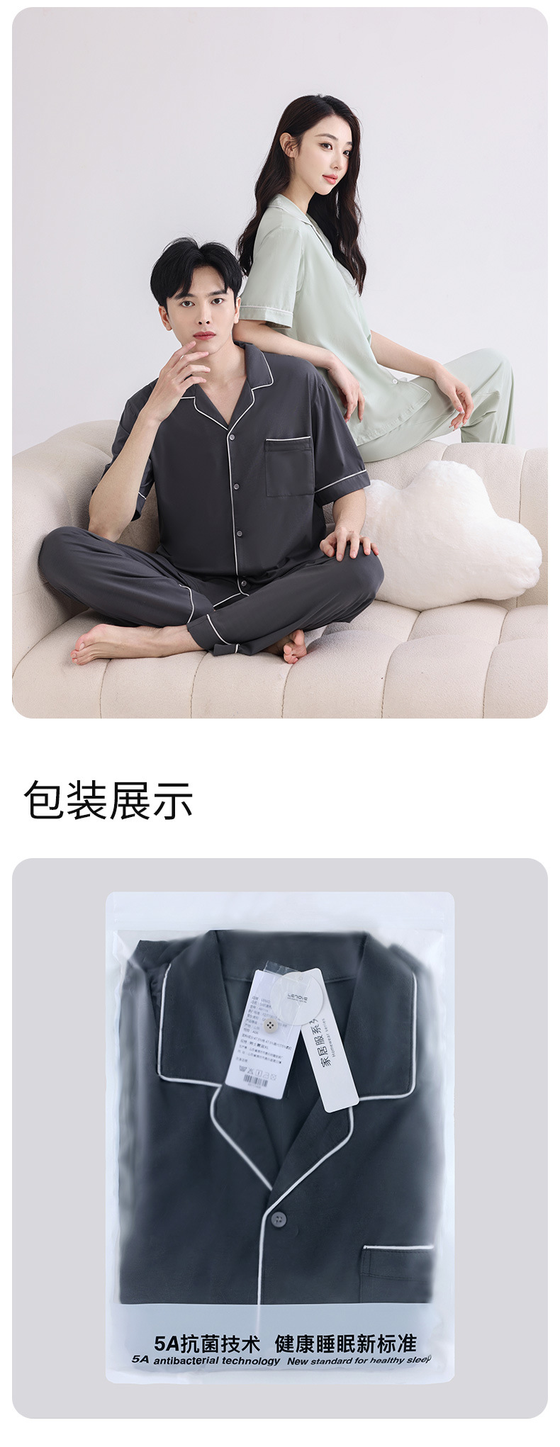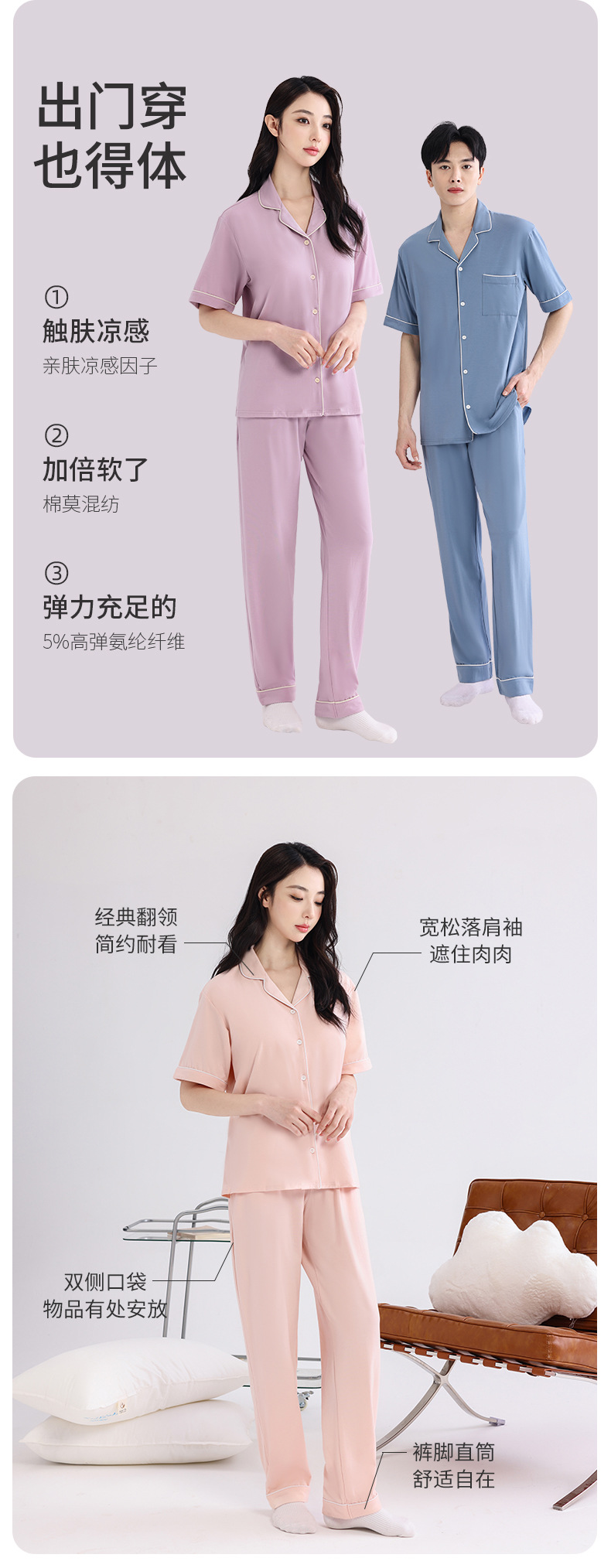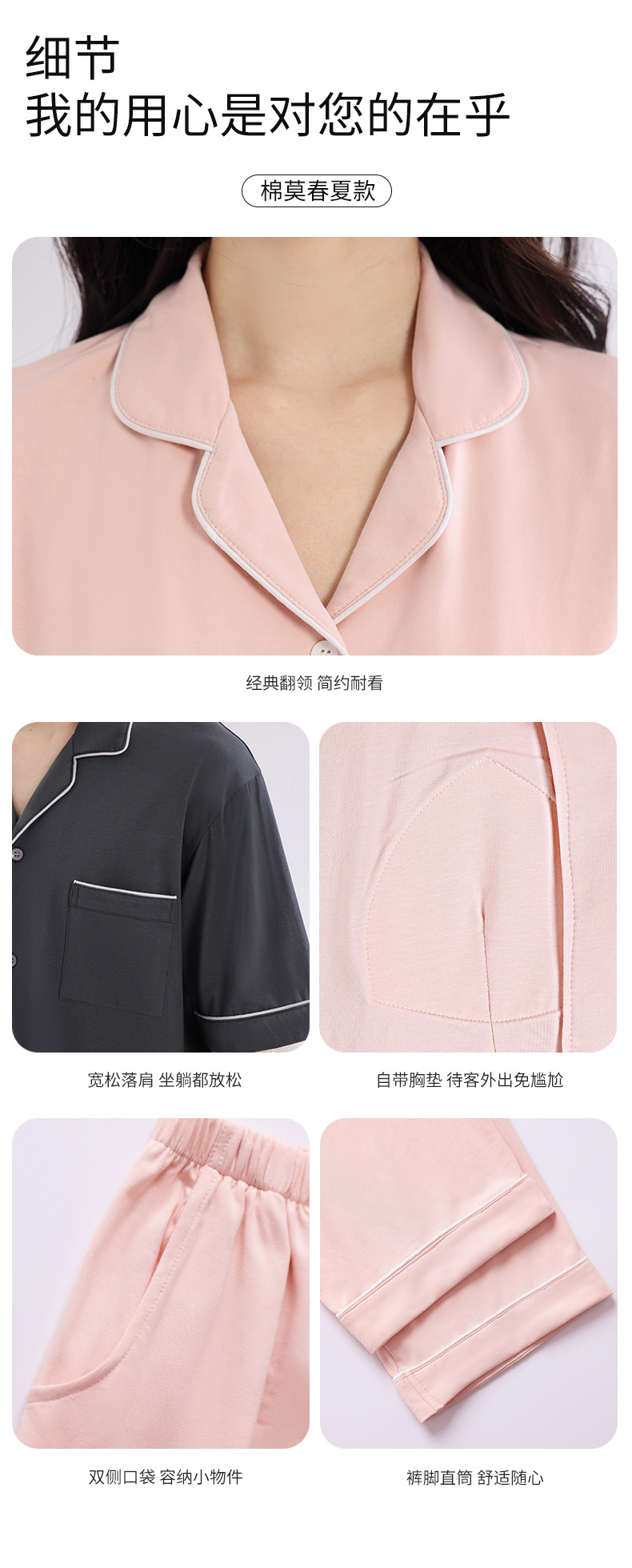 커플의 잠옷 옷깃 반팔 봄 및 여름 쿨 코튼 모달 남자의 여름 얇은 여성 홈 옷 투피스 세트스토어 가기