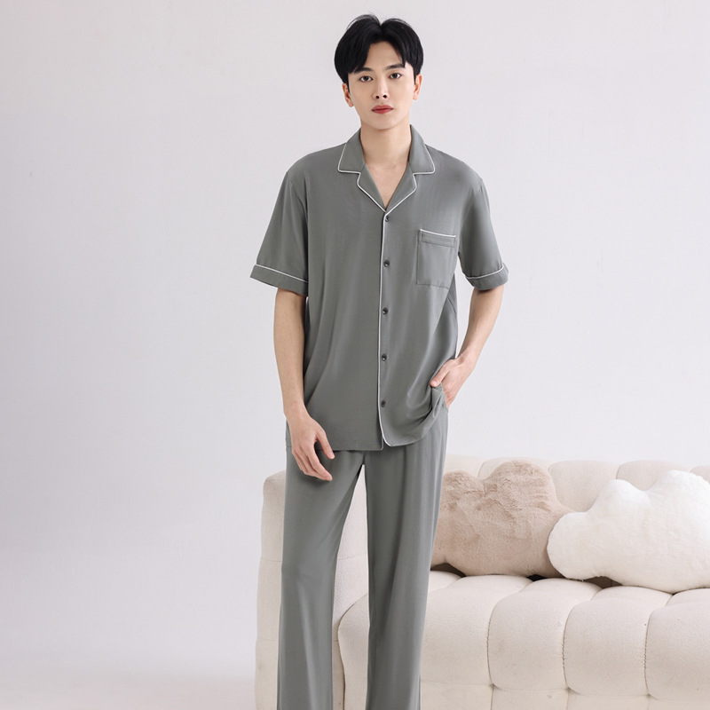 커플의 잠옷 옷깃 반팔 봄 및 여름 쿨 코튼 모달 남자의 여름 얇은 여성 홈 옷 투피스 세트