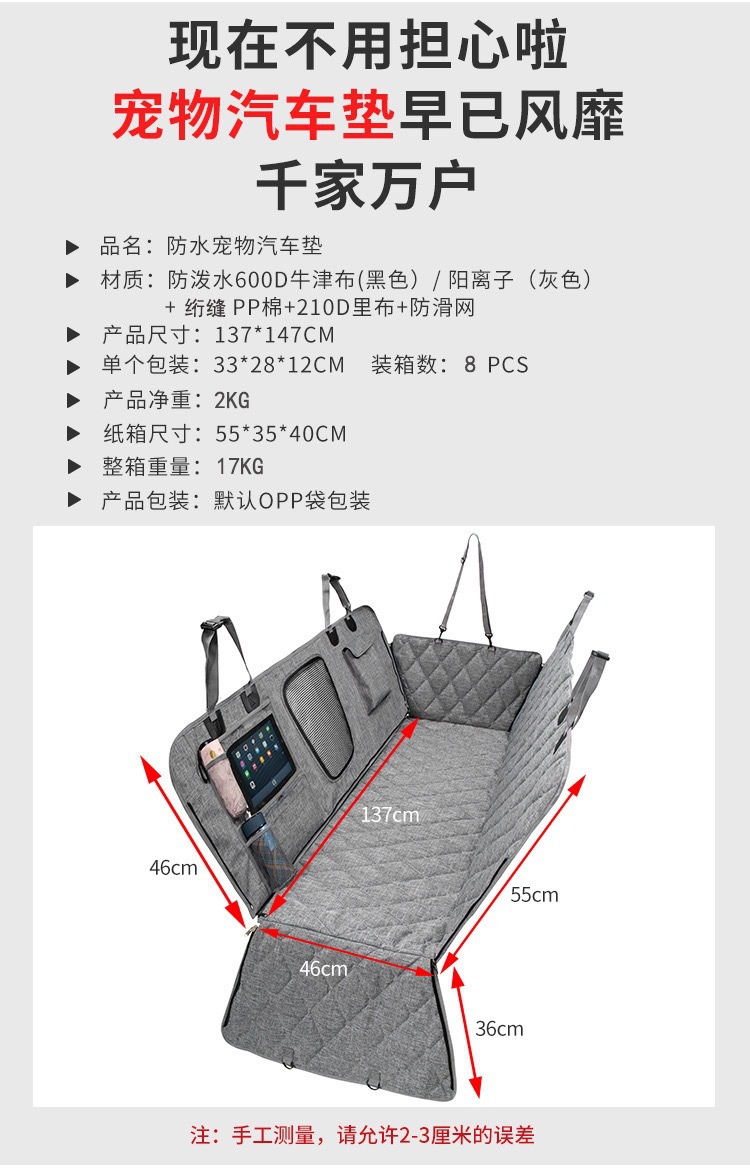 새로운 국경 간 개 자동차 애완 동물 매트 방수 자동차 뒷좌석 애완 동물 자동차 매트 자동차 분리형 더러운 매트스토어 가기