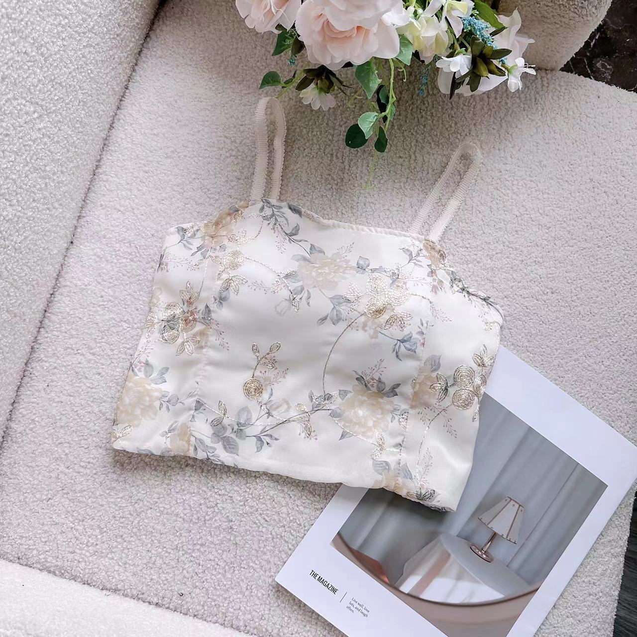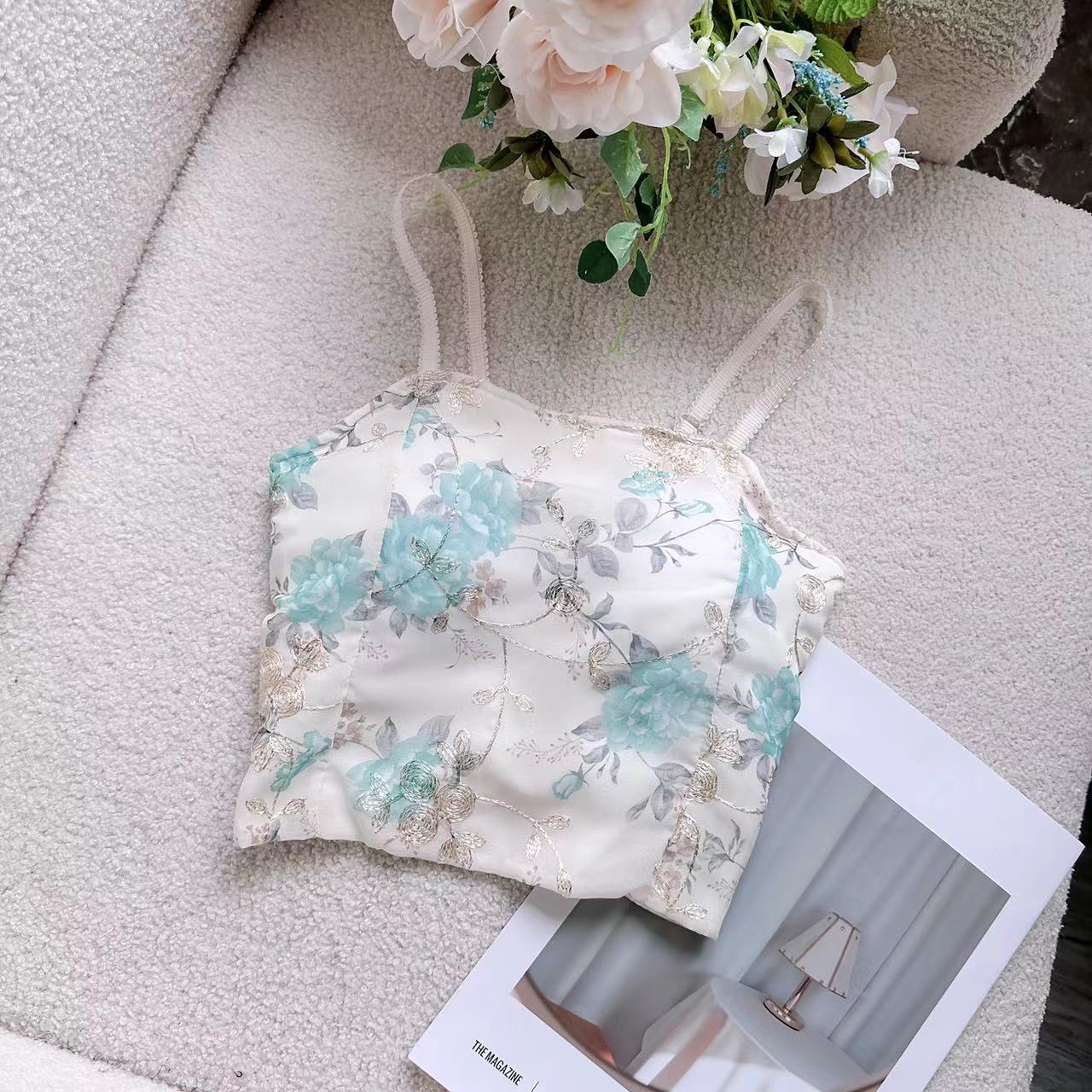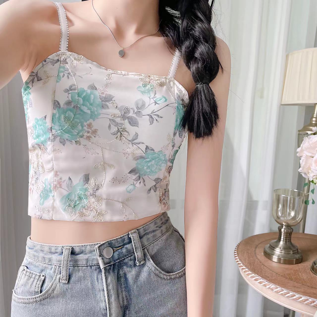 새로운 중국 스타일 빈티지 카미 솔 여성의 자수 세련된 꽃 슬림 핏 가슴 패드베이스 내부 입고 아름다운 뒷면 착용