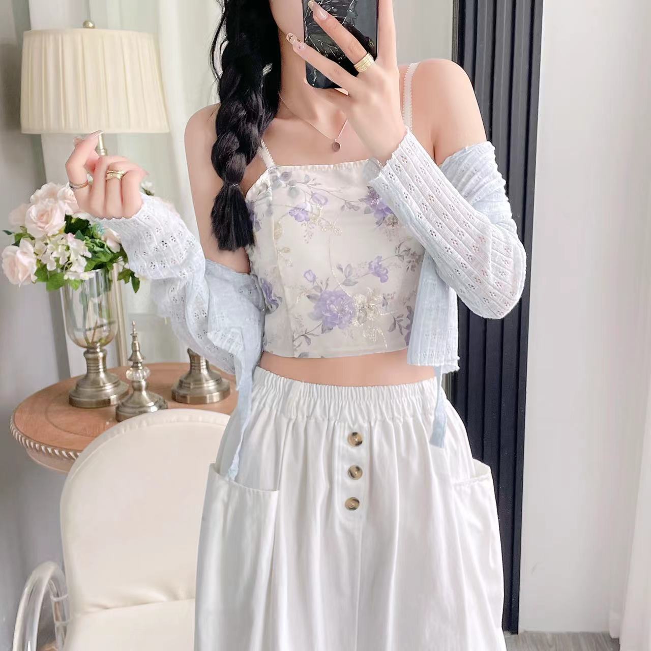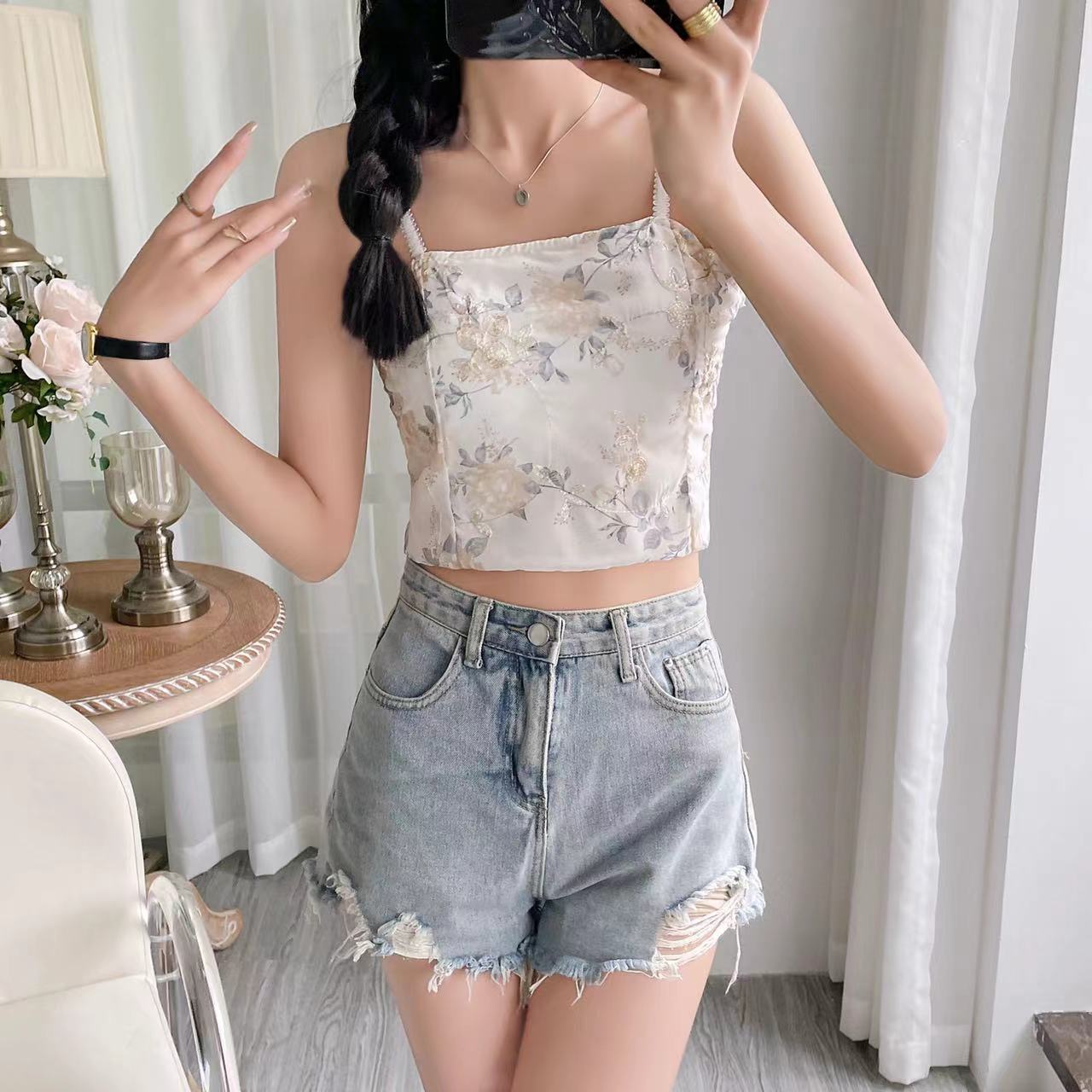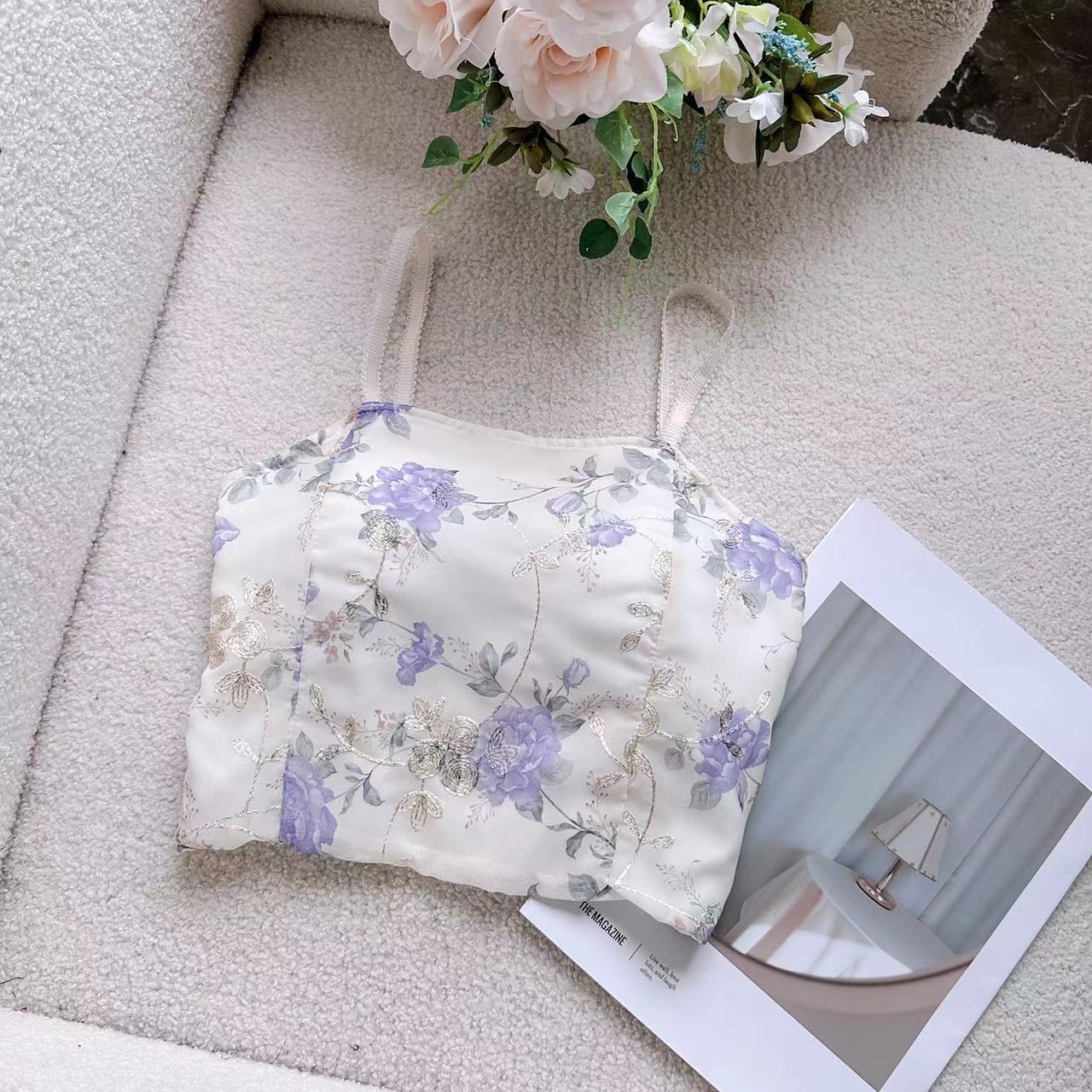 새로운 중국 스타일 빈티지 카미 솔 여성의 자수 세련된 꽃 슬림 핏 가슴 패드베이스 내부 입고 아름다운 뒷면 착용