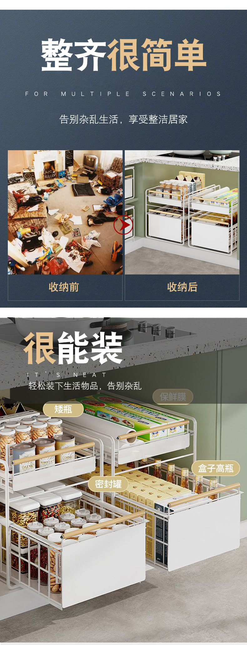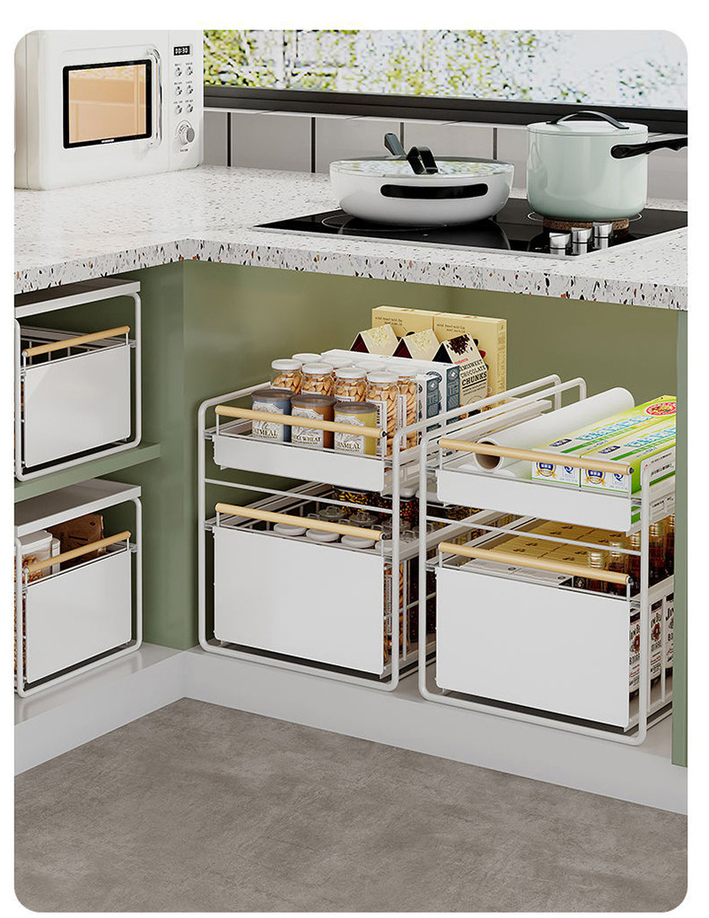 주방 캐비닛 풀 바구니 멀티 기능 풀 아웃 스토리지 랙 캐비닛 더 낮은 싱크 요리 조미료 풀 바구니 레이어 랙