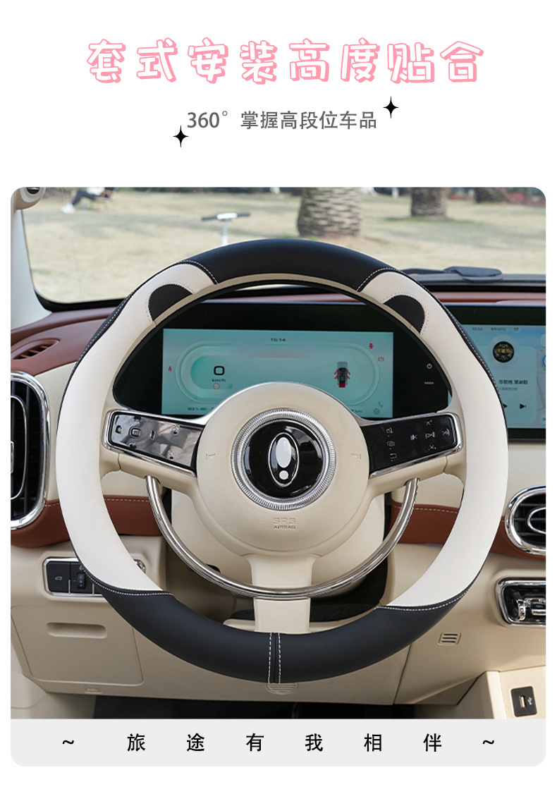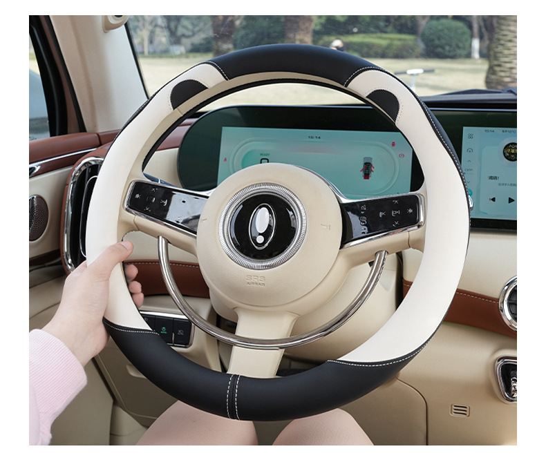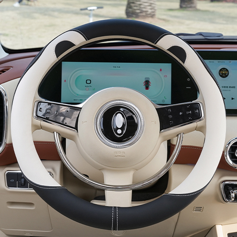 • 가죽 곰 작은 귀 스티어링 휠 커버-흑백