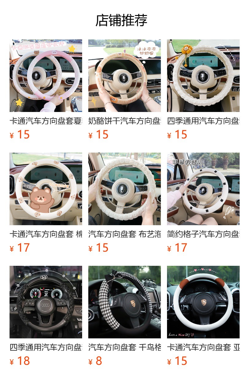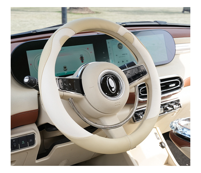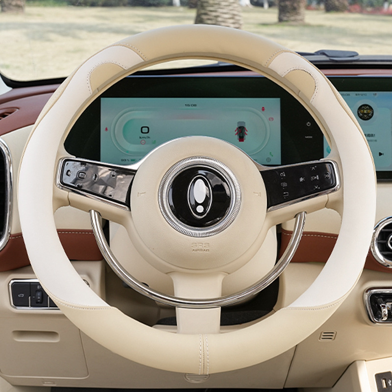 • 가죽 곰 작은 귀 스티어링 휠 커버-우유 차 화이트