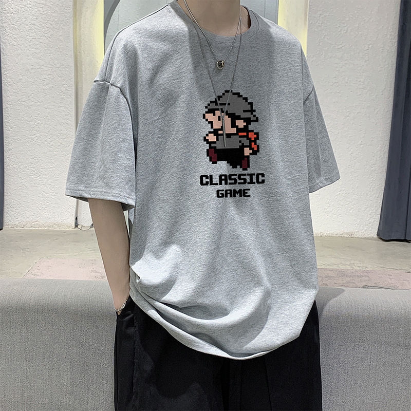 100 면 여름 느슨한 큰 크기 1.00 kg-150.00 kg 유행 티셔츠 짧은 소매 십대 남자의 간단한 올 매치 티셔츠스토어 가기