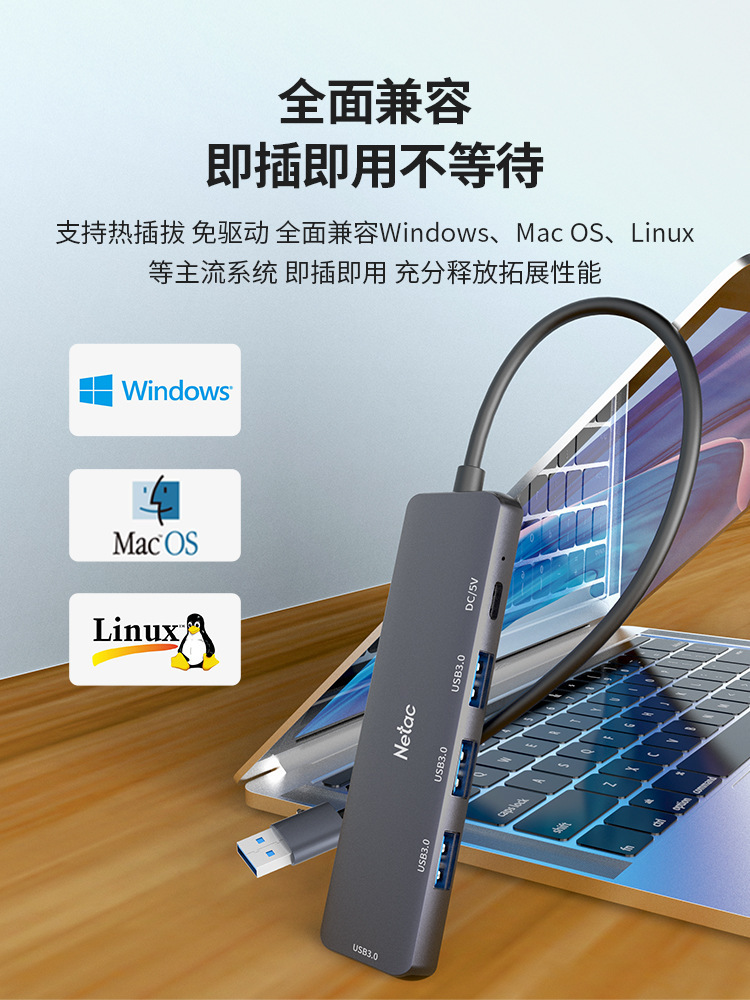 Longco USB-A 도킹 스테이션 USB3.0 * 4 어댑터 알루미늄 합금 범용 컴퓨터 액세서리 1 드래그 4 고속스토어 가기