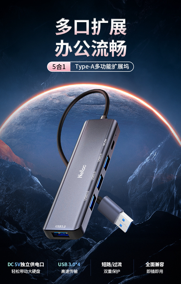 Longco USB-A 도킹 스테이션 USB3.0 * 4 어댑터 알루미늄 합금 범용 컴퓨터 액세서리 1 드래그 4 고속