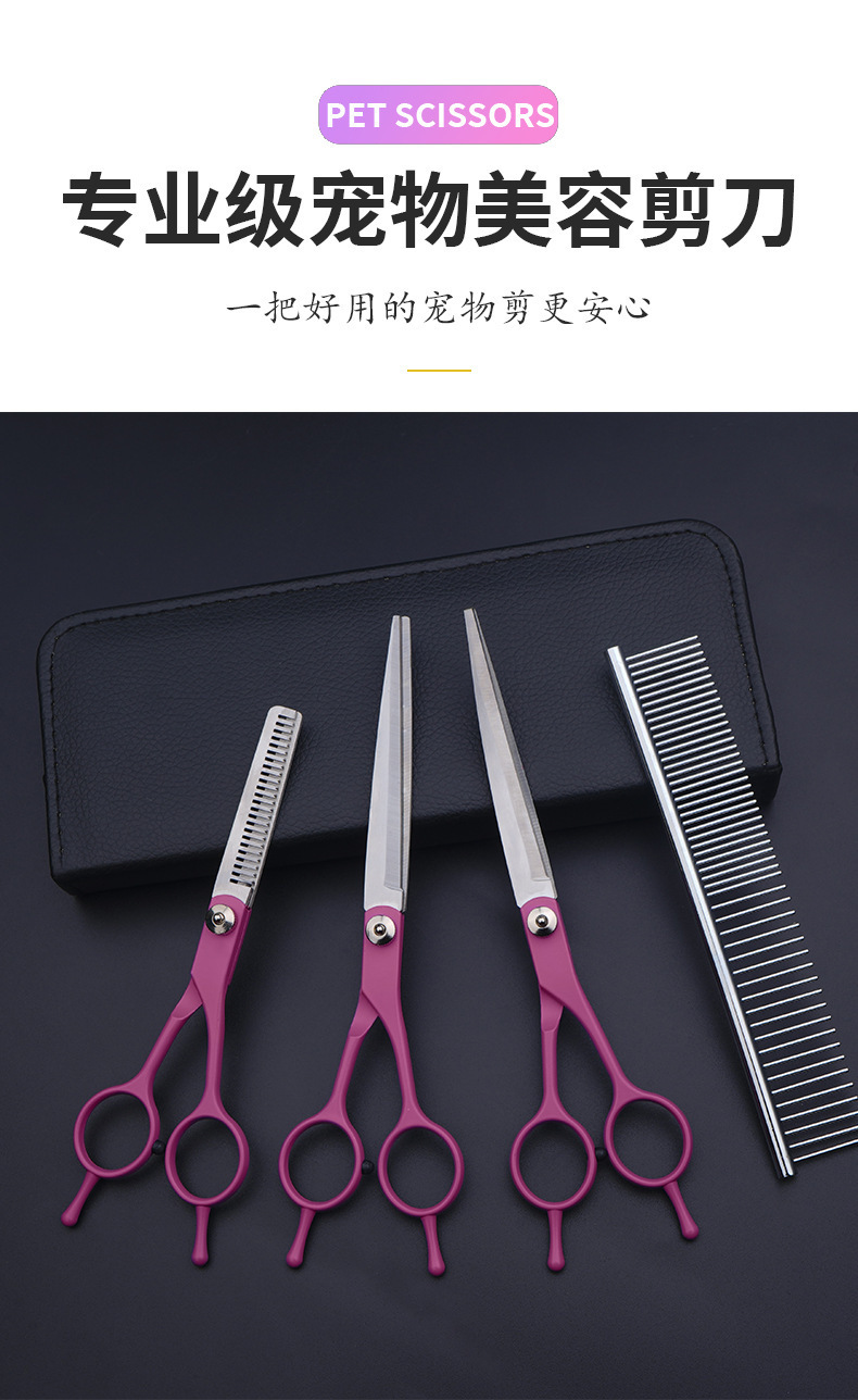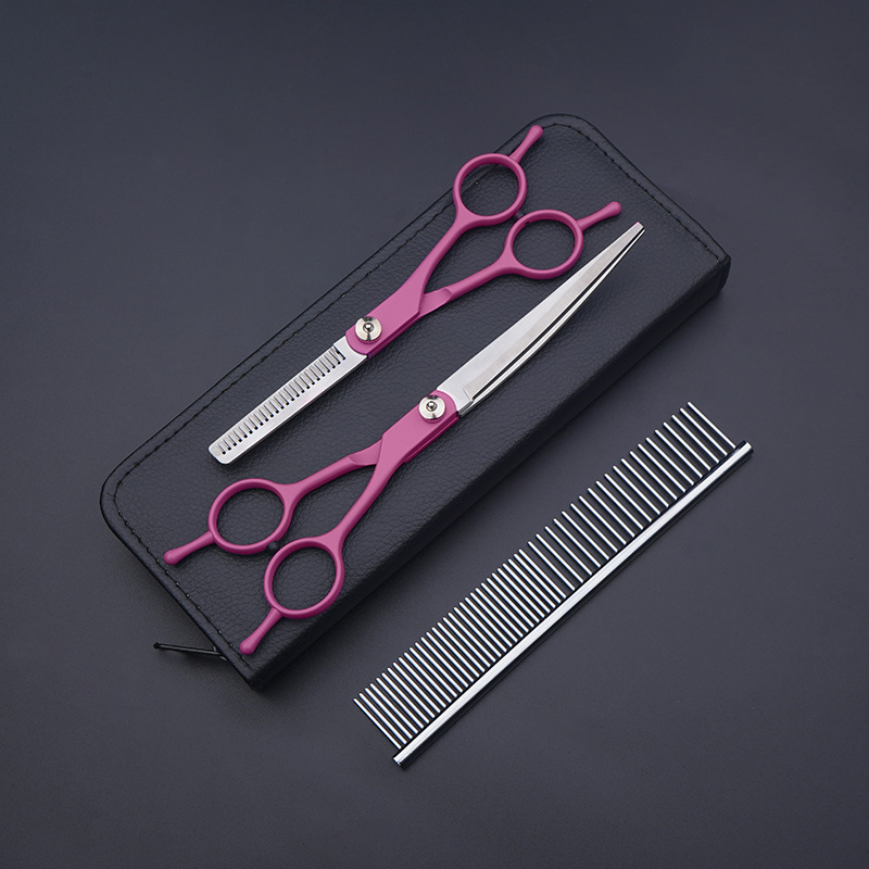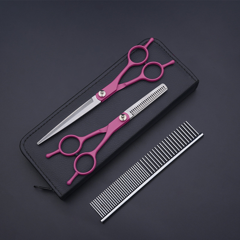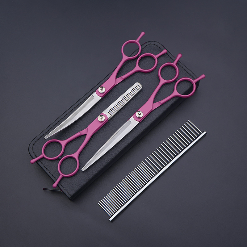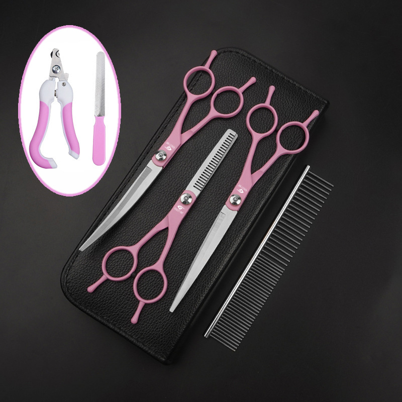 애완 동물 가위 뷰티 가위 전문 7 인치 편평한 가위 전단 절단기 개 머리 얇은 이발사 전문 가위 세트