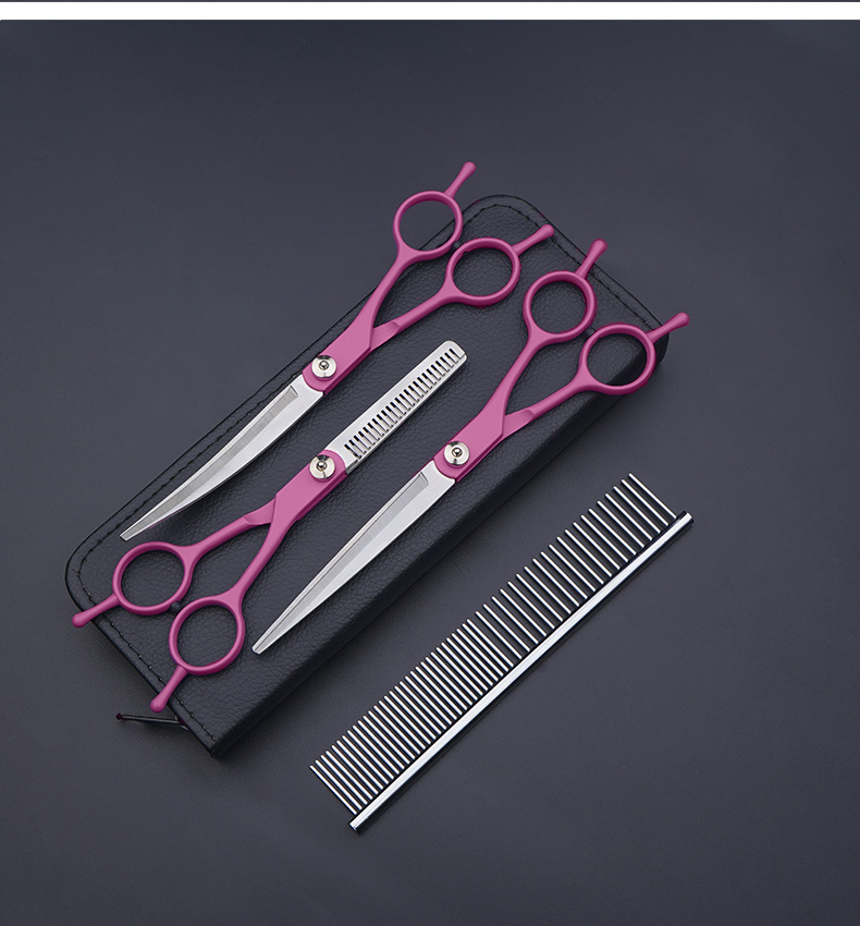 • 7inch 더블테일 스트레이트 가위 + 곡선 가위 + 치과 가위 + 강철 빗 + 가방 + 손톱깎이 + 러빙 스트립