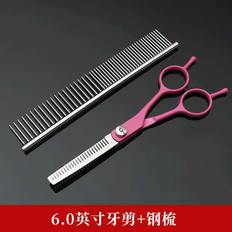 • 6inch 로즈 레드 더블 테일 네일 치과용 가위 + 스틸 빗