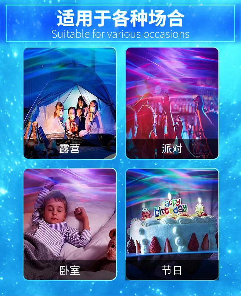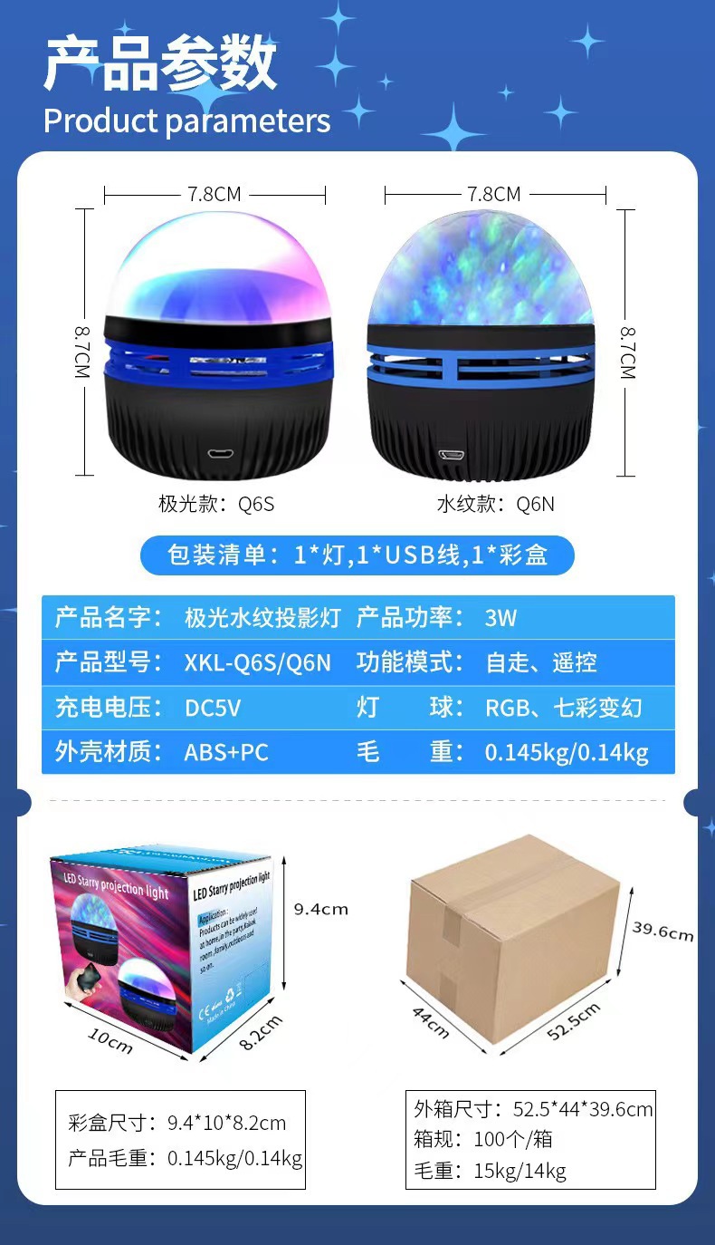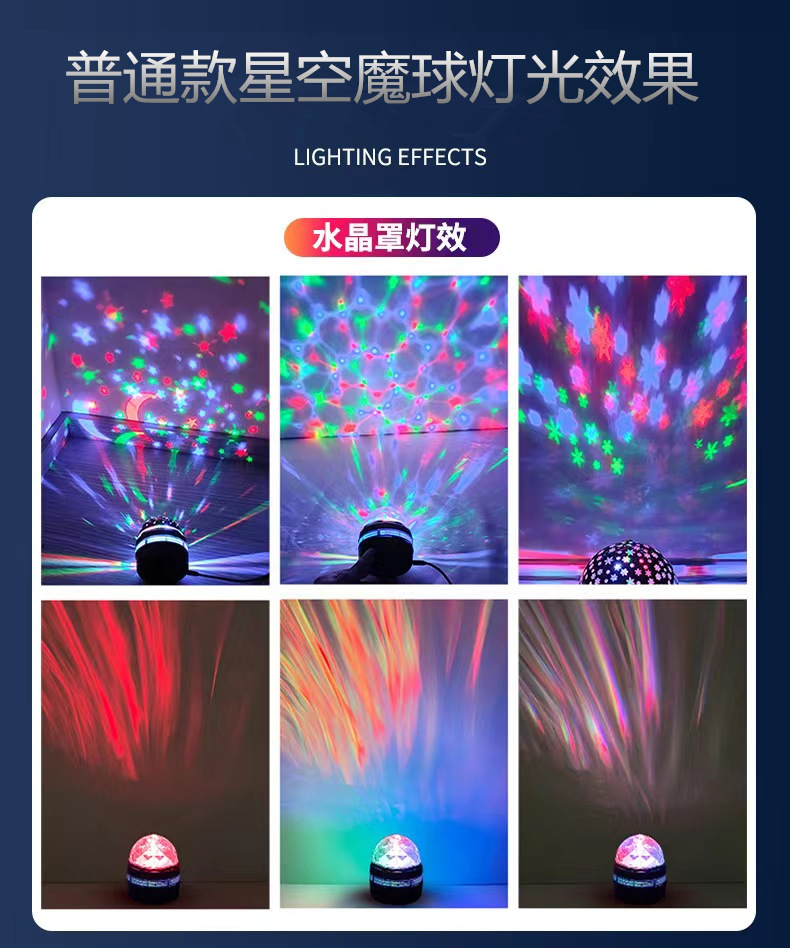 오로라 동적 원격 제어 프로젝션 야간 조명 및 그림자 분위기 빛 회전 물 리플 라이트 별이 빛나는 크리스탈 매직 볼