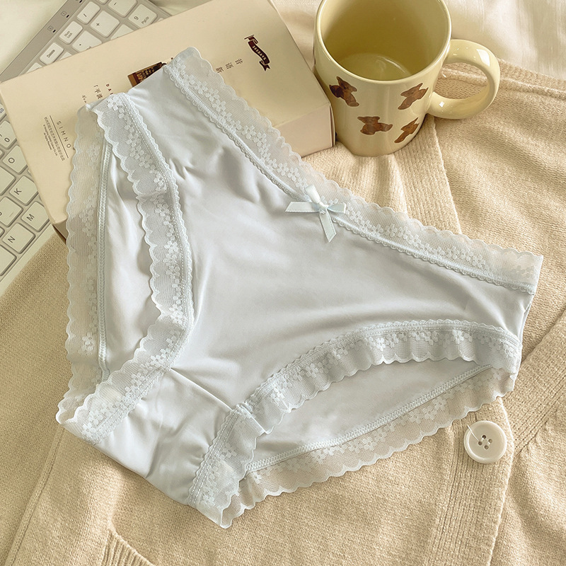 여성용 아이스 실크 팬티, 무봉제 초박형 속건 통기성 무봉제 레이스 섹시 로우라이즈 여성 삼각팬티 해외배송