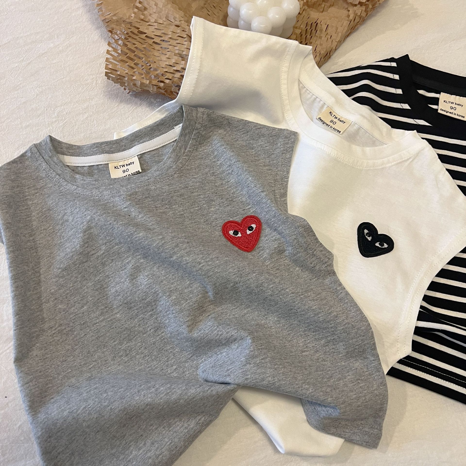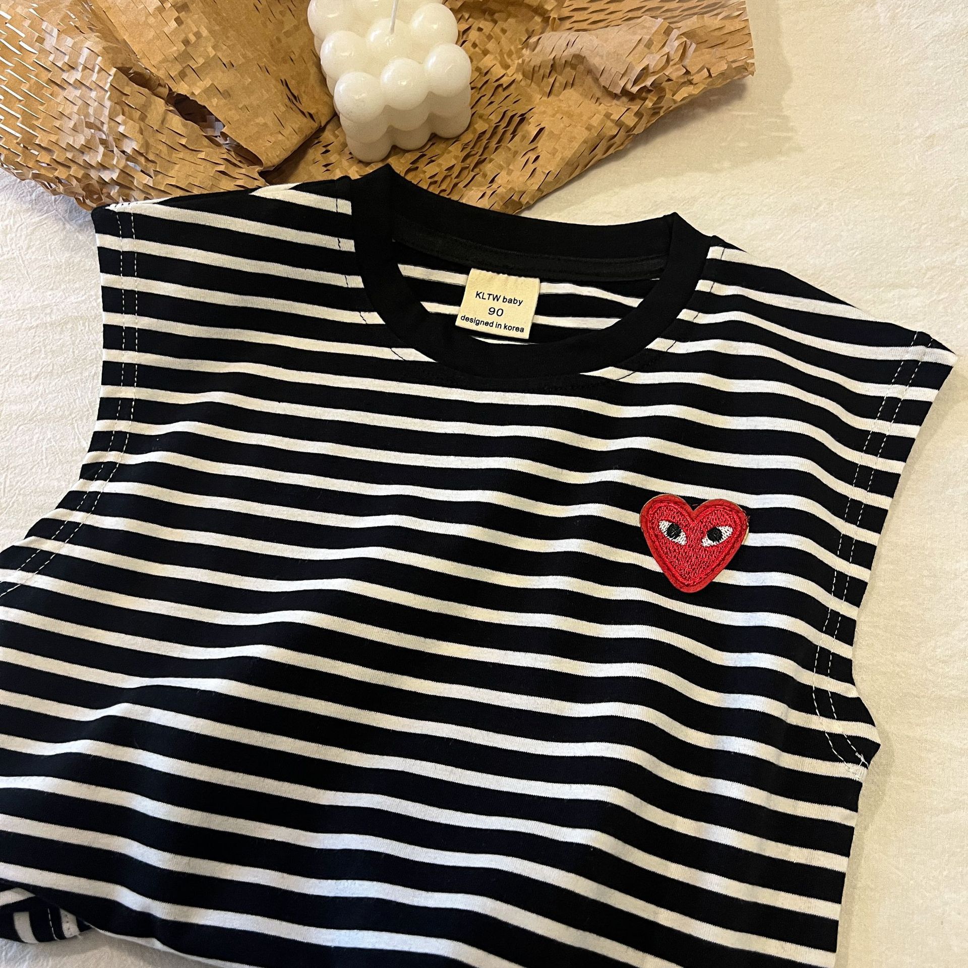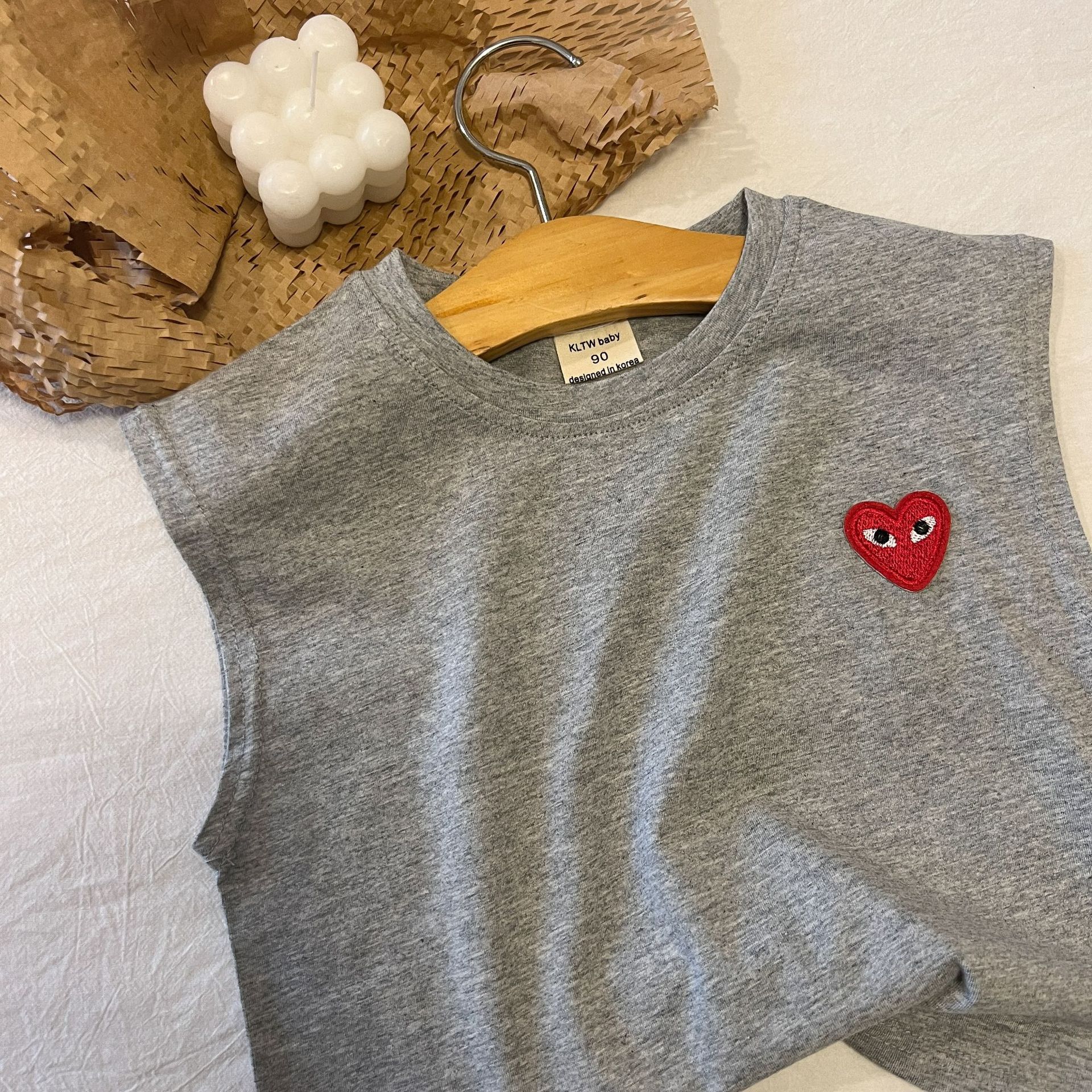 어린이 조끼 2024 여름 새로운 소년과 소녀 사랑 티셔츠 아기 민소매 티셔츠 어린이 줄무늬 최고 단색 라운드스토어 가기