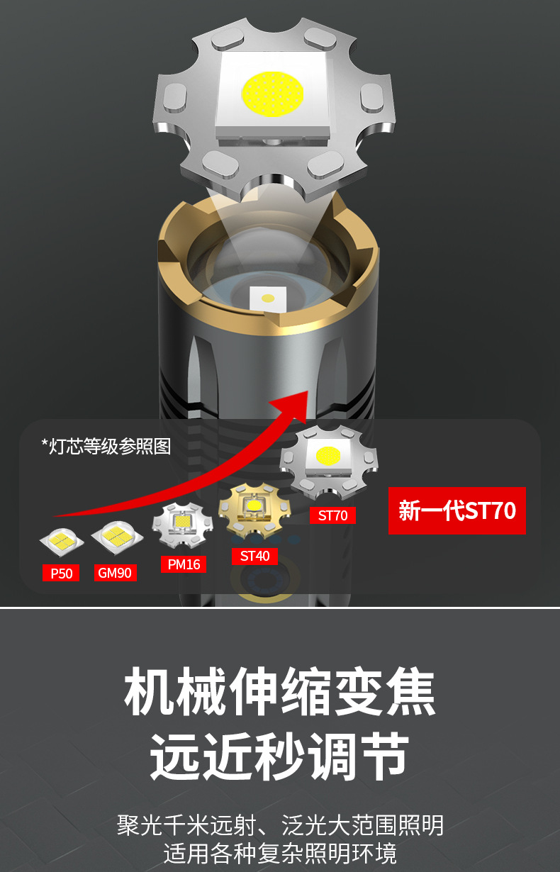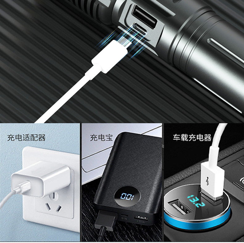 국경 간 새로운 손전등 야외 다기능 장거리 충전식 조명 흰색 레이저 망원경 초점