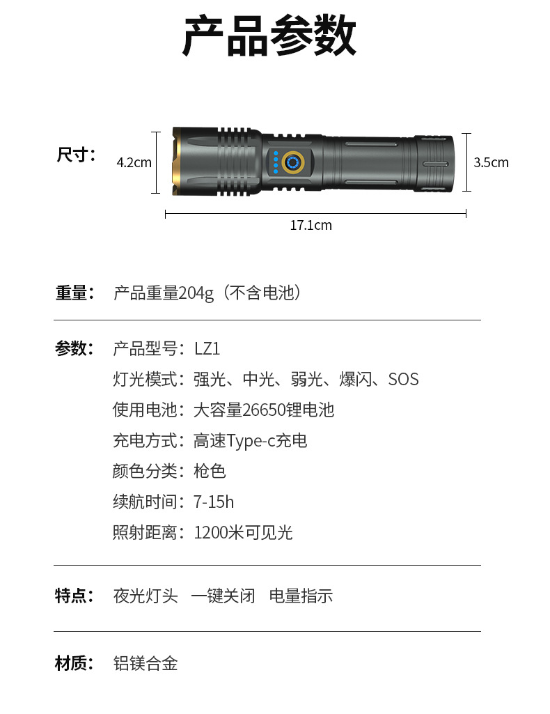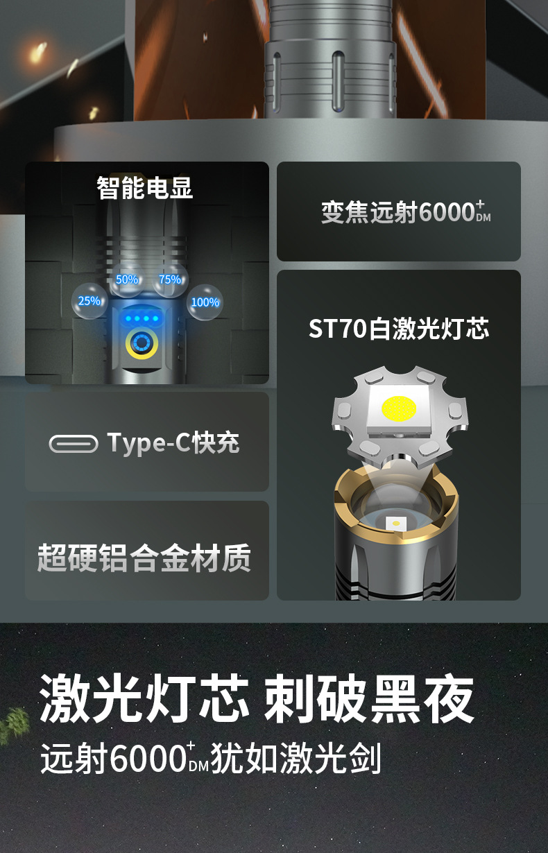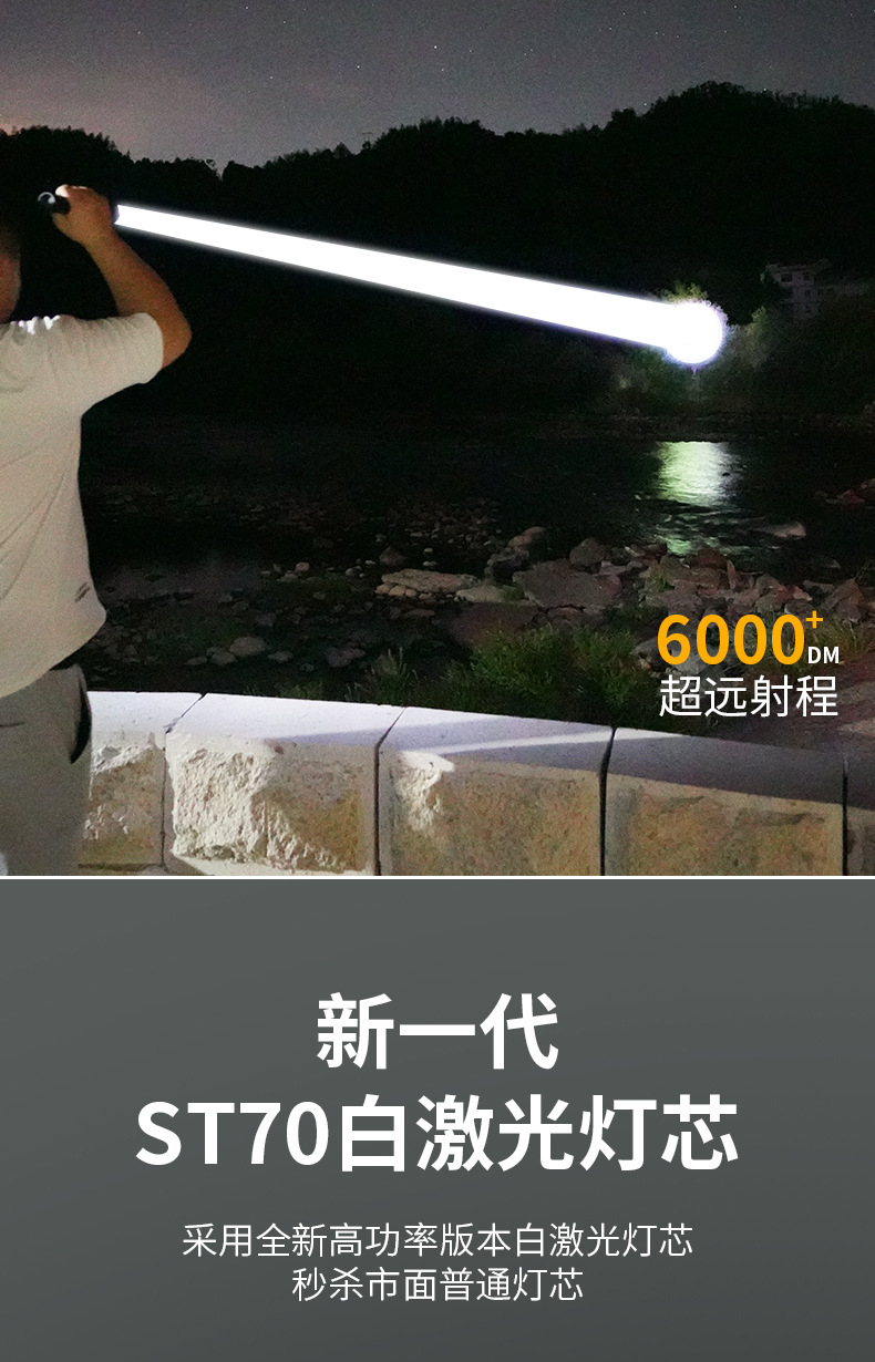 국경 간 새로운 손전등 야외 다기능 장거리 충전식 조명 흰색 레이저 망원경 초점스토어 가기