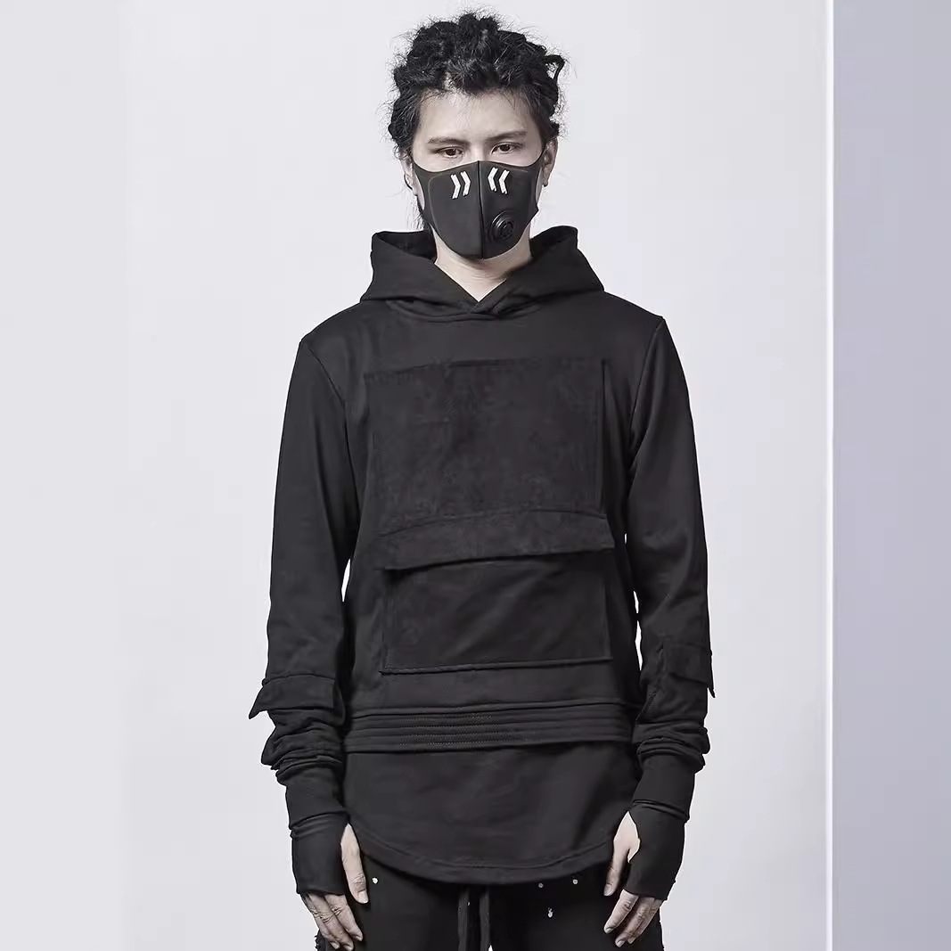 하이 스트리트 힙합 세련된 후드 스웨터 바느질 느슨한 레트로 어두운 독특한 베이스 셔츠 남성 스타일리스트 후디스토어 가기
