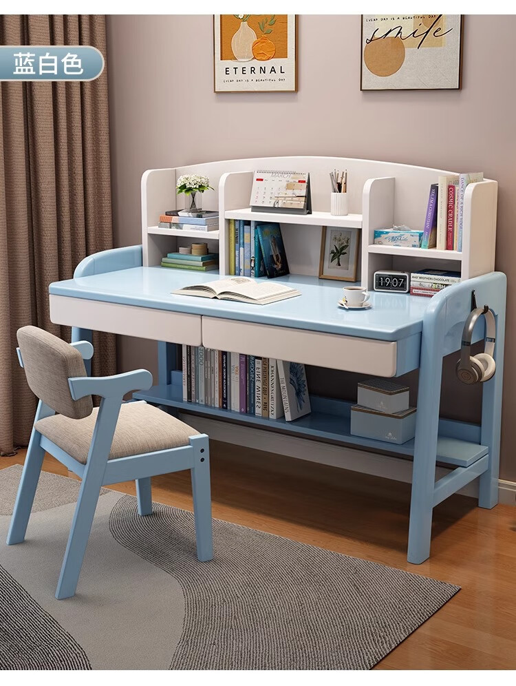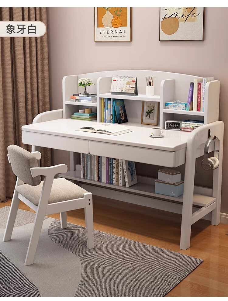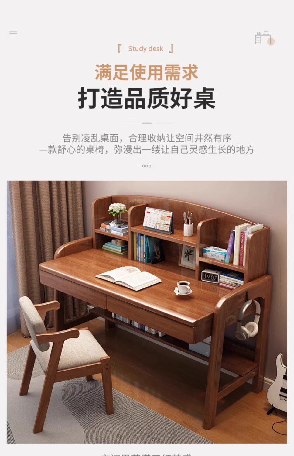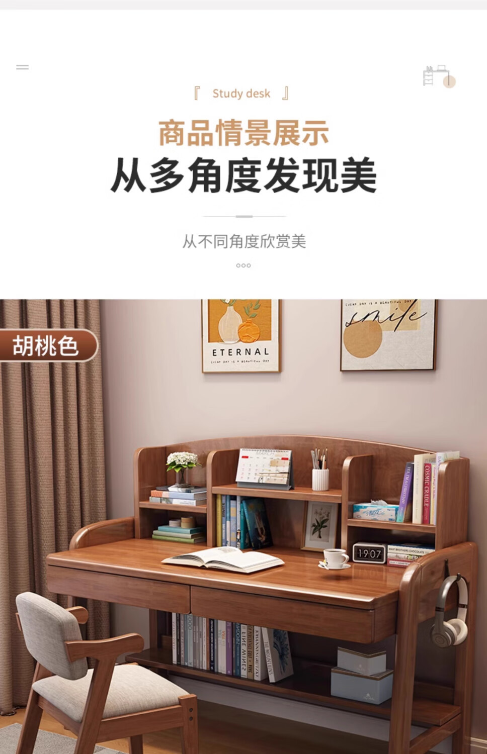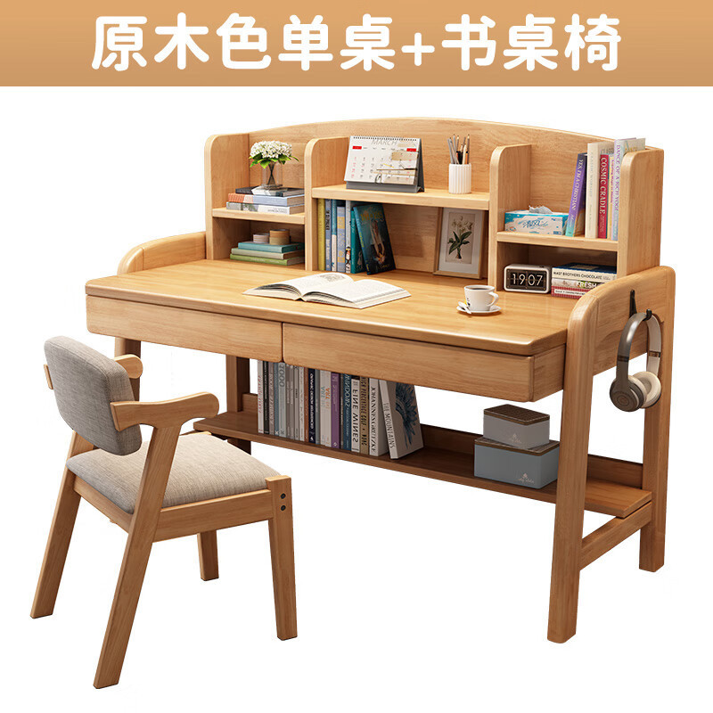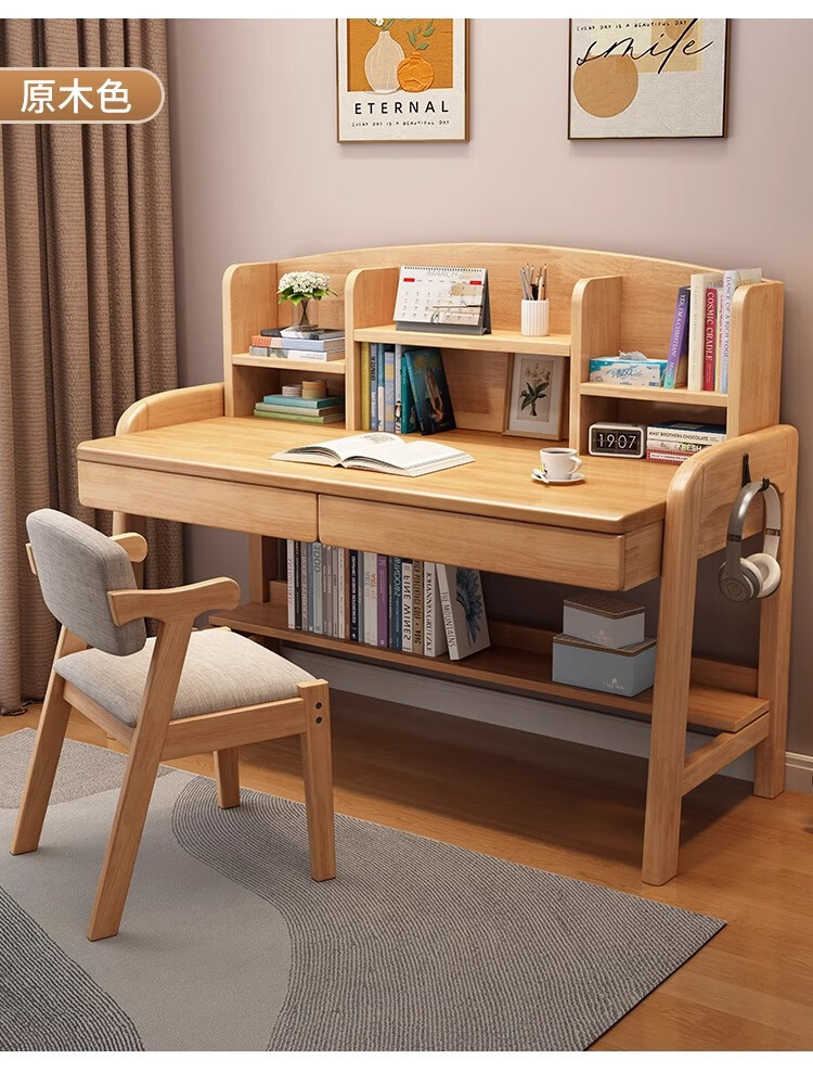 책상 컴퓨터 책상 책꽂이 통합 솔리드 우드 Liftable 스터디 데스크 침실 초등 및 중등 학교 학생을위한 간단한 가정용 책상스토어 가기