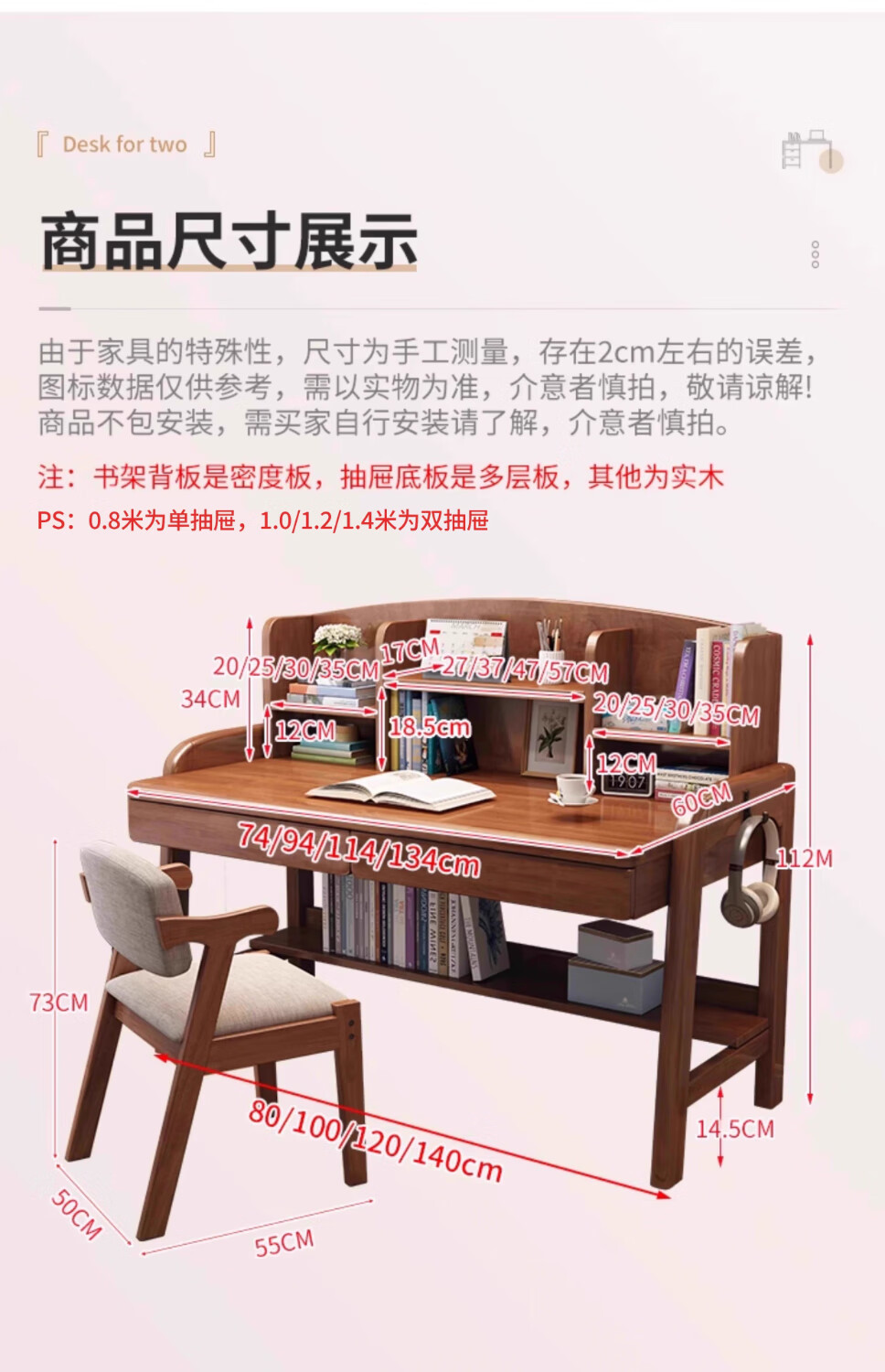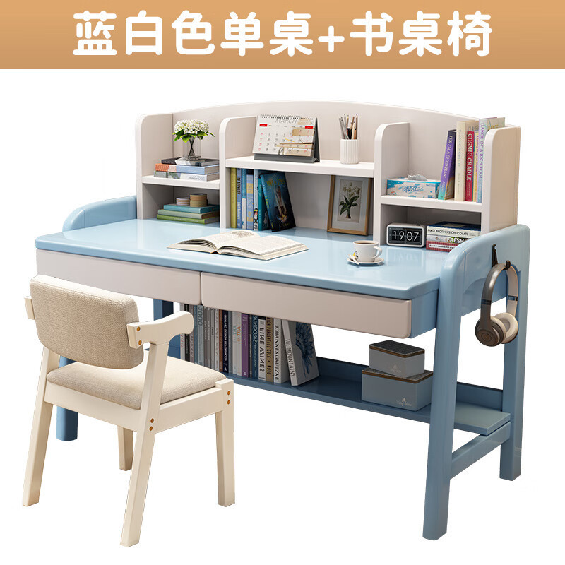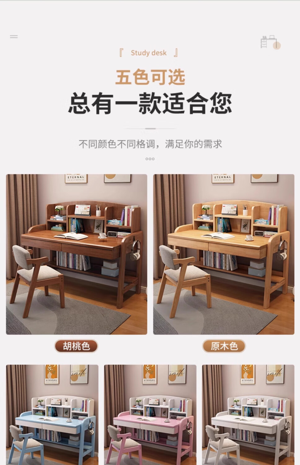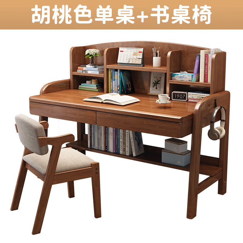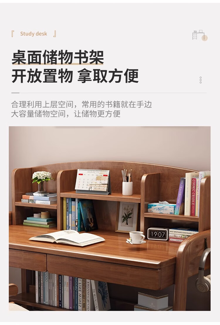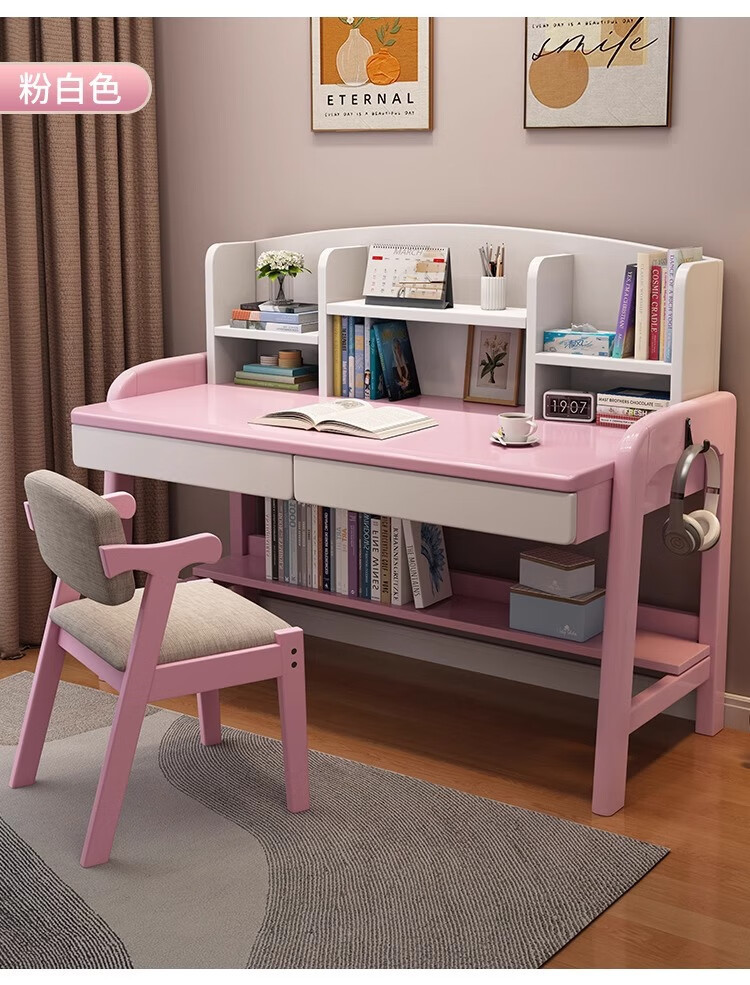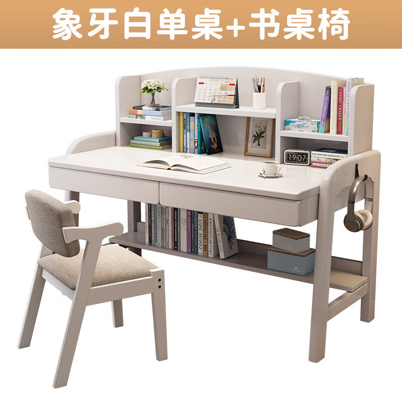책상 컴퓨터 책상 책꽂이 통합 솔리드 우드 Liftable 스터디 데스크 침실 초등 및 중등 학교 학생을위한 간단한 가정용 책상스토어 가기
